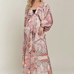 ADORA Printed V-Neck Batwing Sleeve Dress