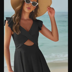 Cutout V-Neck Cap Sleeve One-Piece Swimwear