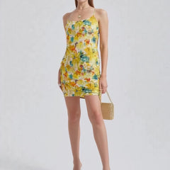 Drawstring Ruched Printed Cami Mini Dress