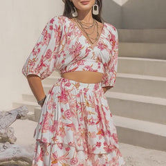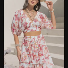 Printed Half Sleeve Top and Layered Skirt Set