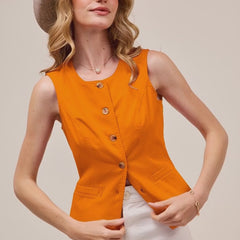 SO ME Slim Fit Button Front Game Day Color Denim Vest Top