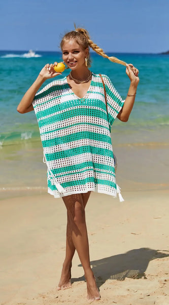Angel Wings Tassel Openwork Striped V-Neck Cover Up