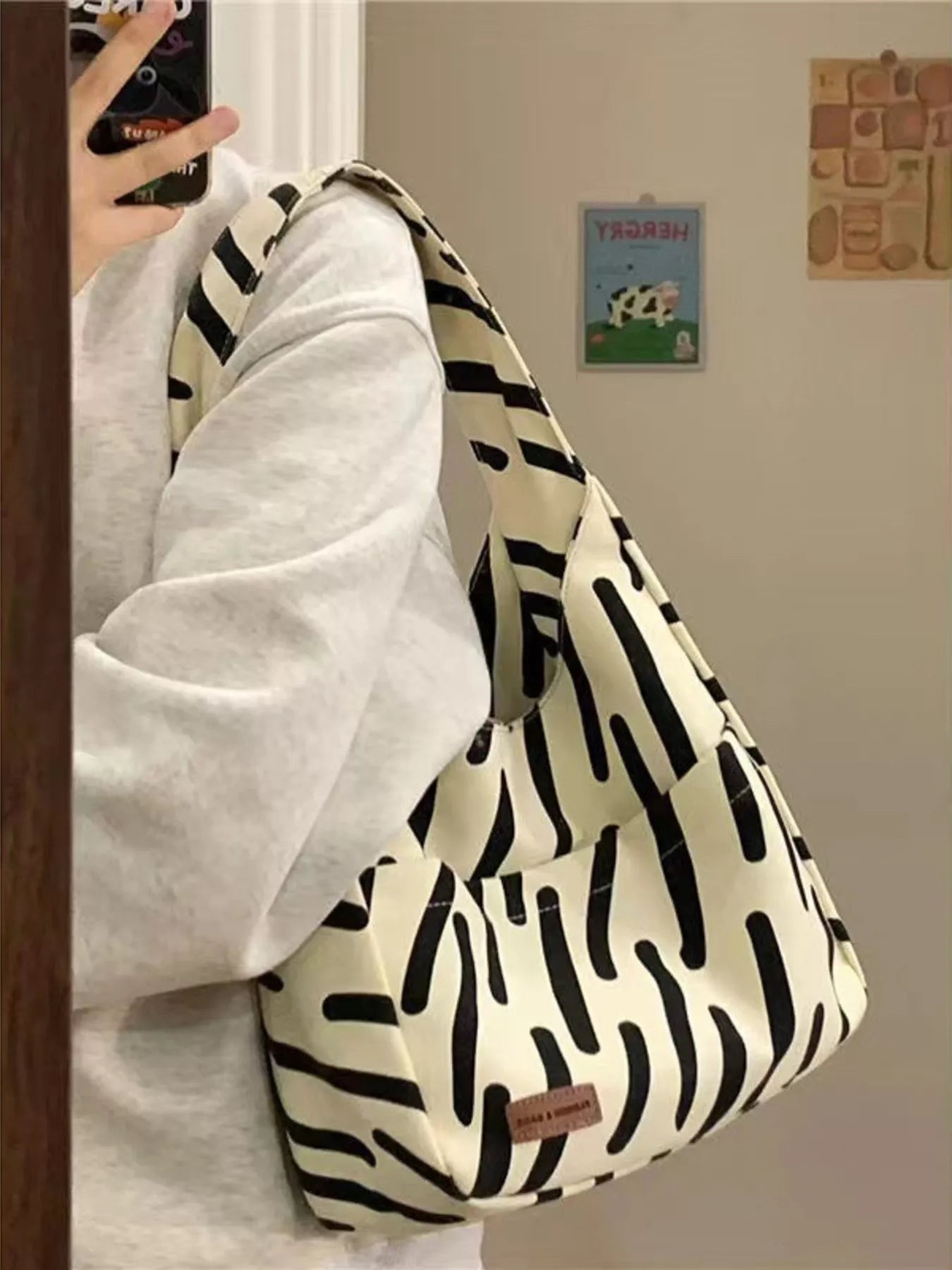 Striped Pattern Casual Handbag