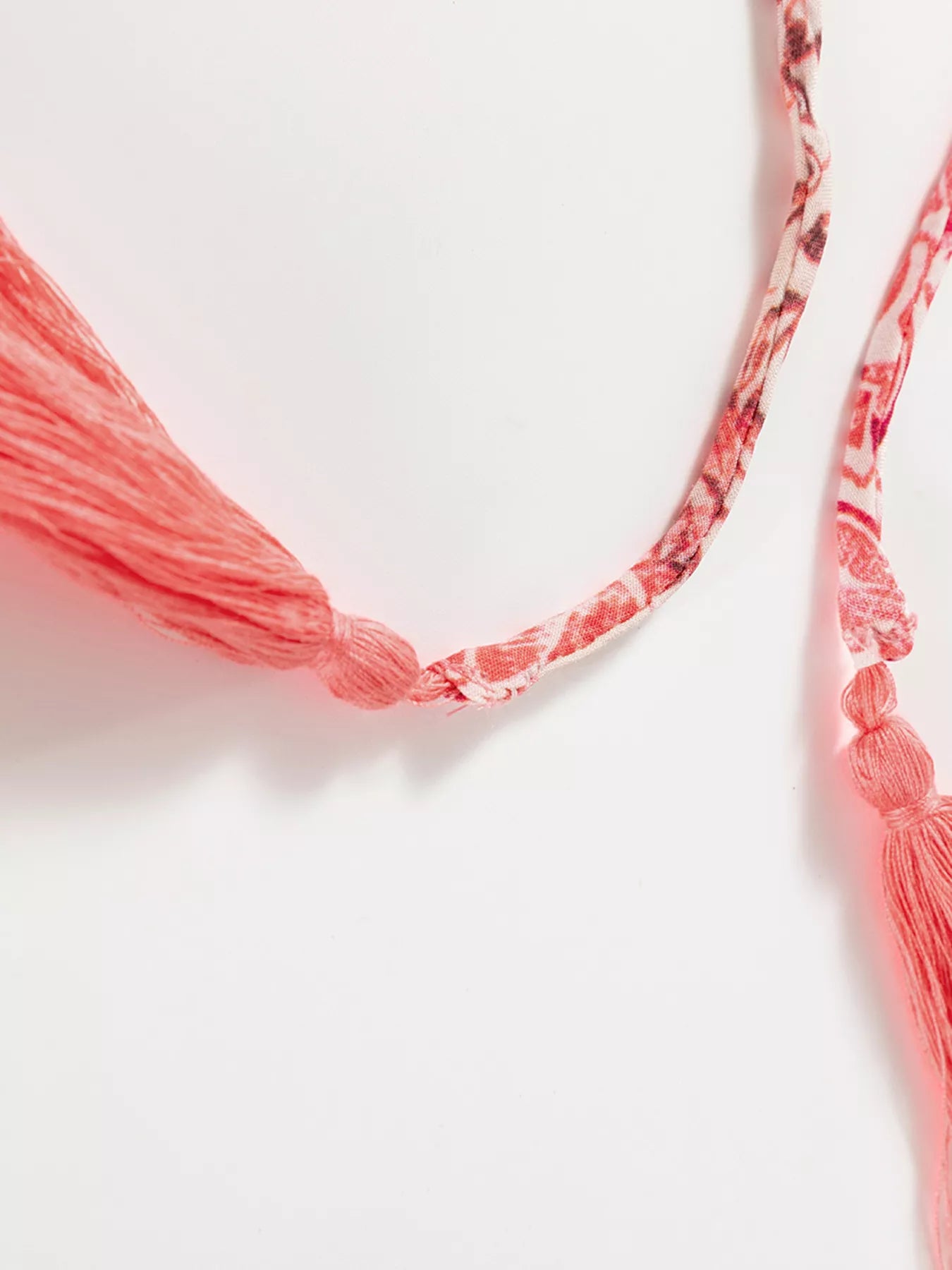 loral Print Tassel Tie Long Sleeve Flowy Mini Dress