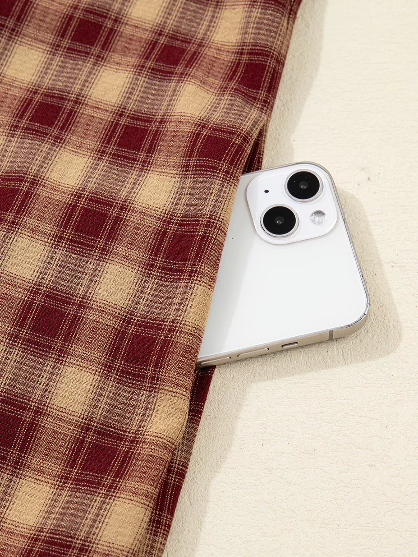 Plaid Print Ruffled Long Sleeve Patchwork Hem Mini Shirt Dress