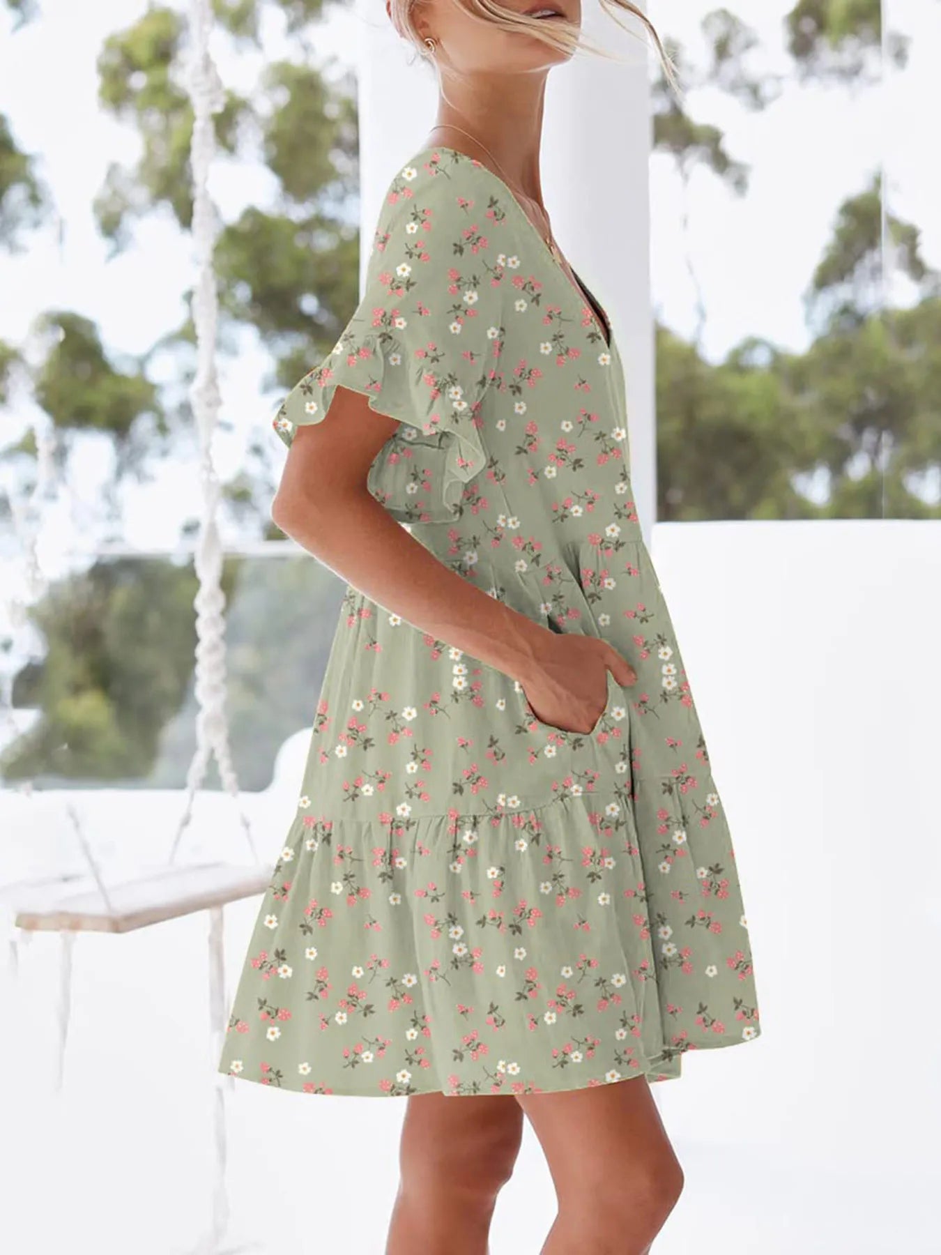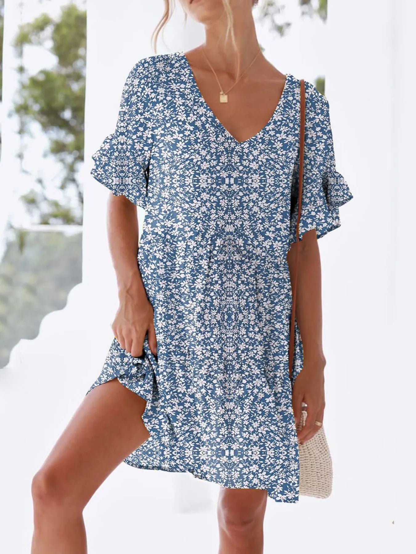 Polka Dot V-Neck Short Sleeve Mini Dress