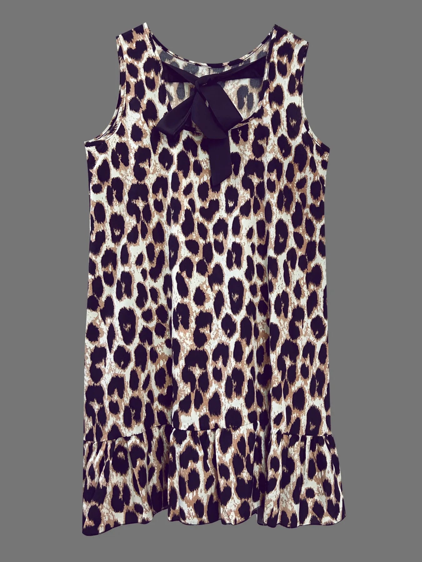 Ruffled Hem Leopard Sleeveless Dress
