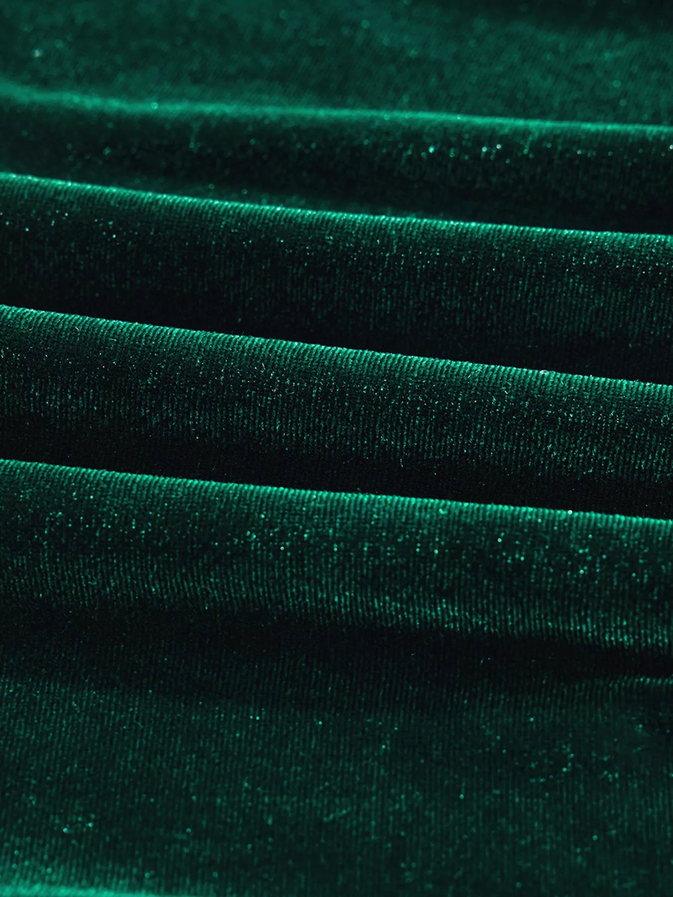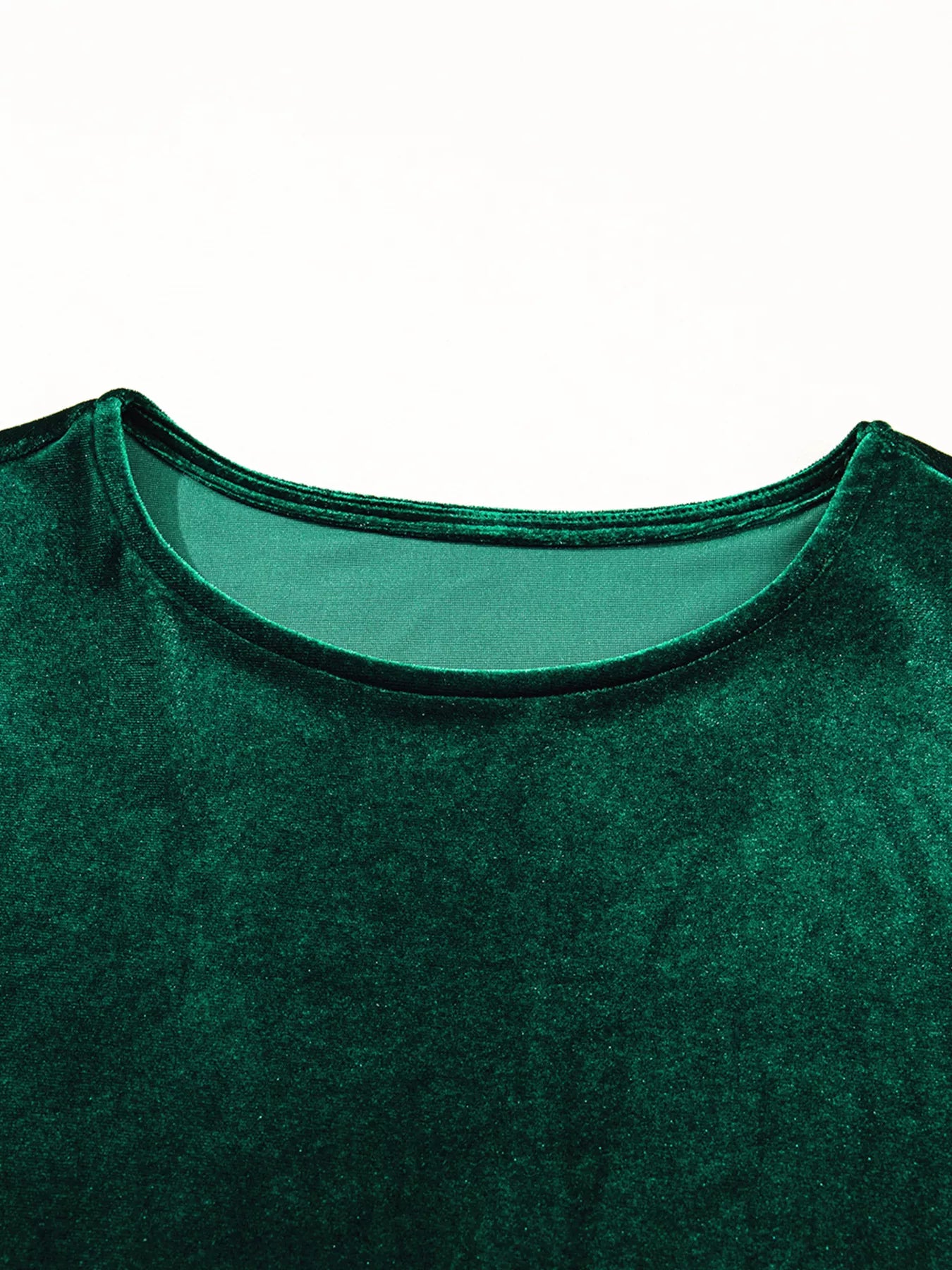 Sequin Puff Sleeve High Waist Tiered Velvet Mini Dress