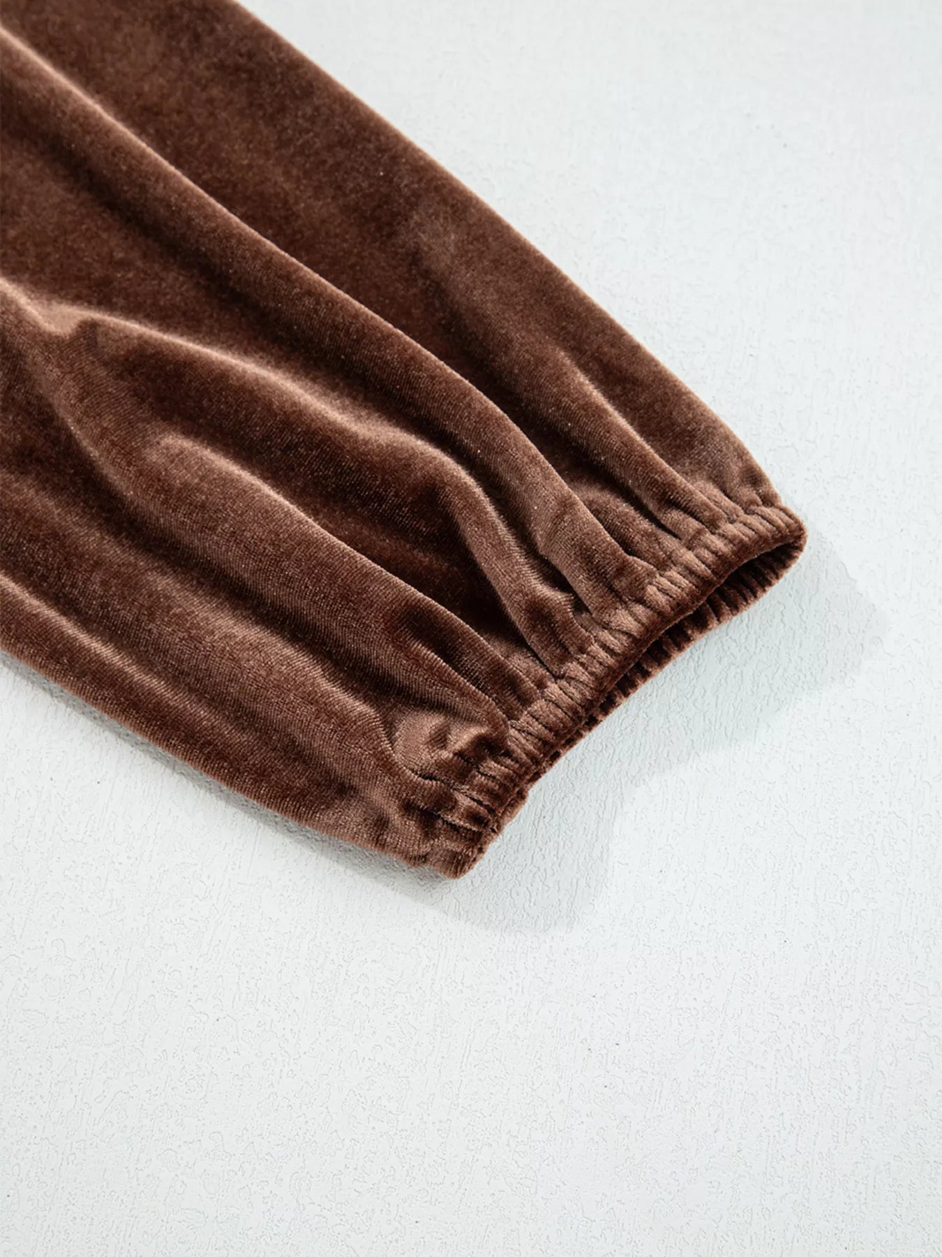 Solid Color Velvet V Neck Long Sleeve Tiered Mini Dress