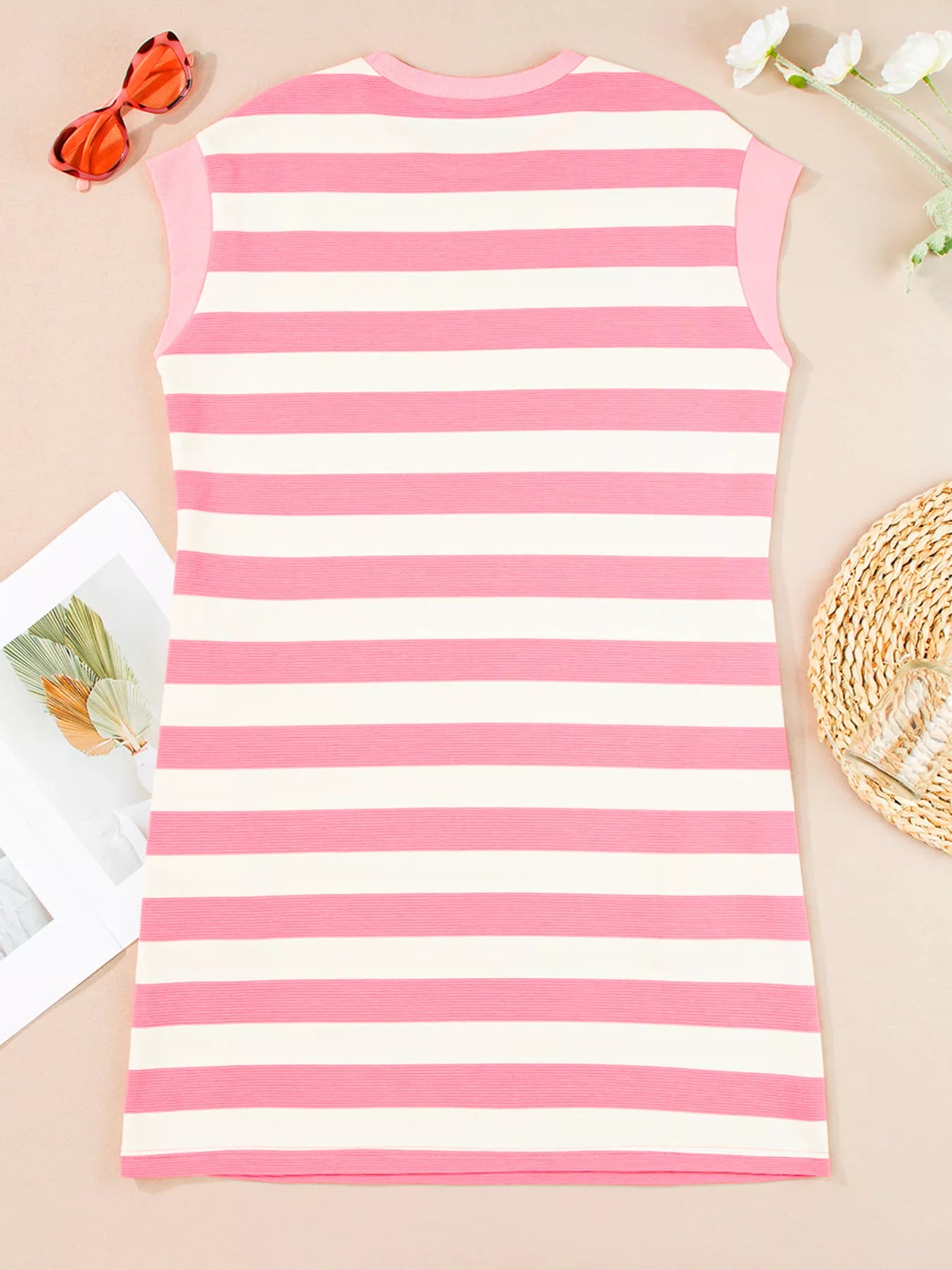 Stripe Cap Sleeve Pocketed Shift Dress