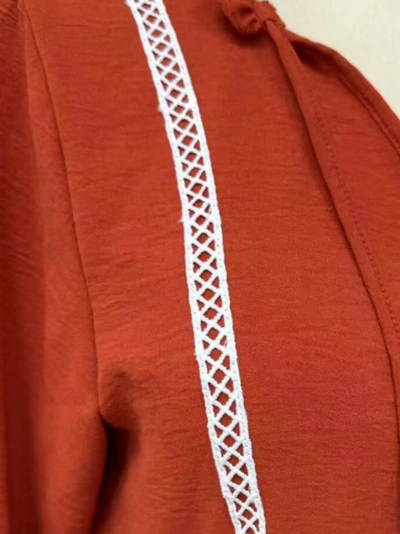 Tie-Neck Long Sleeve Mini Dress with Trim Detail