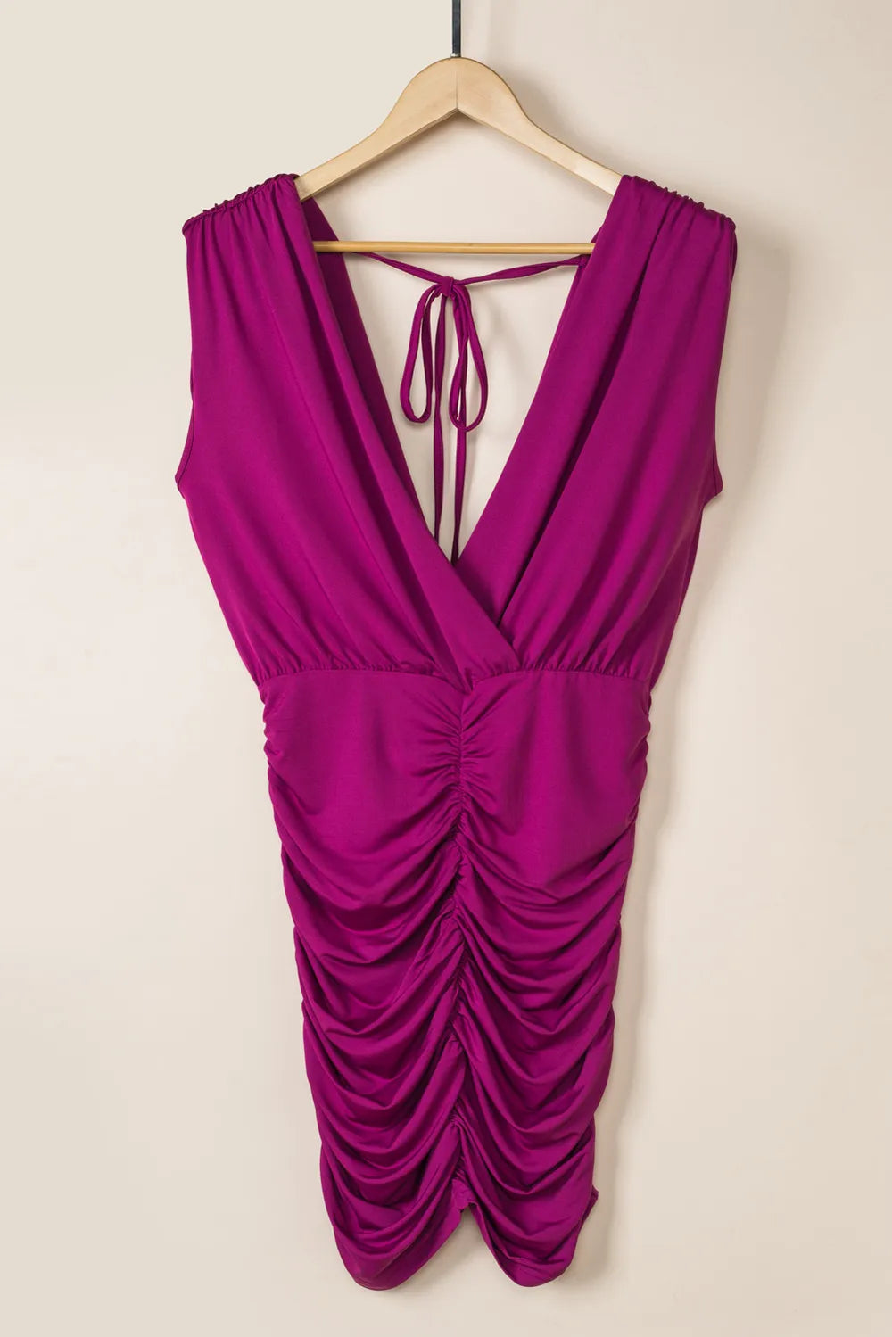 Ruched Surplice Sleeveless Wrap Dress