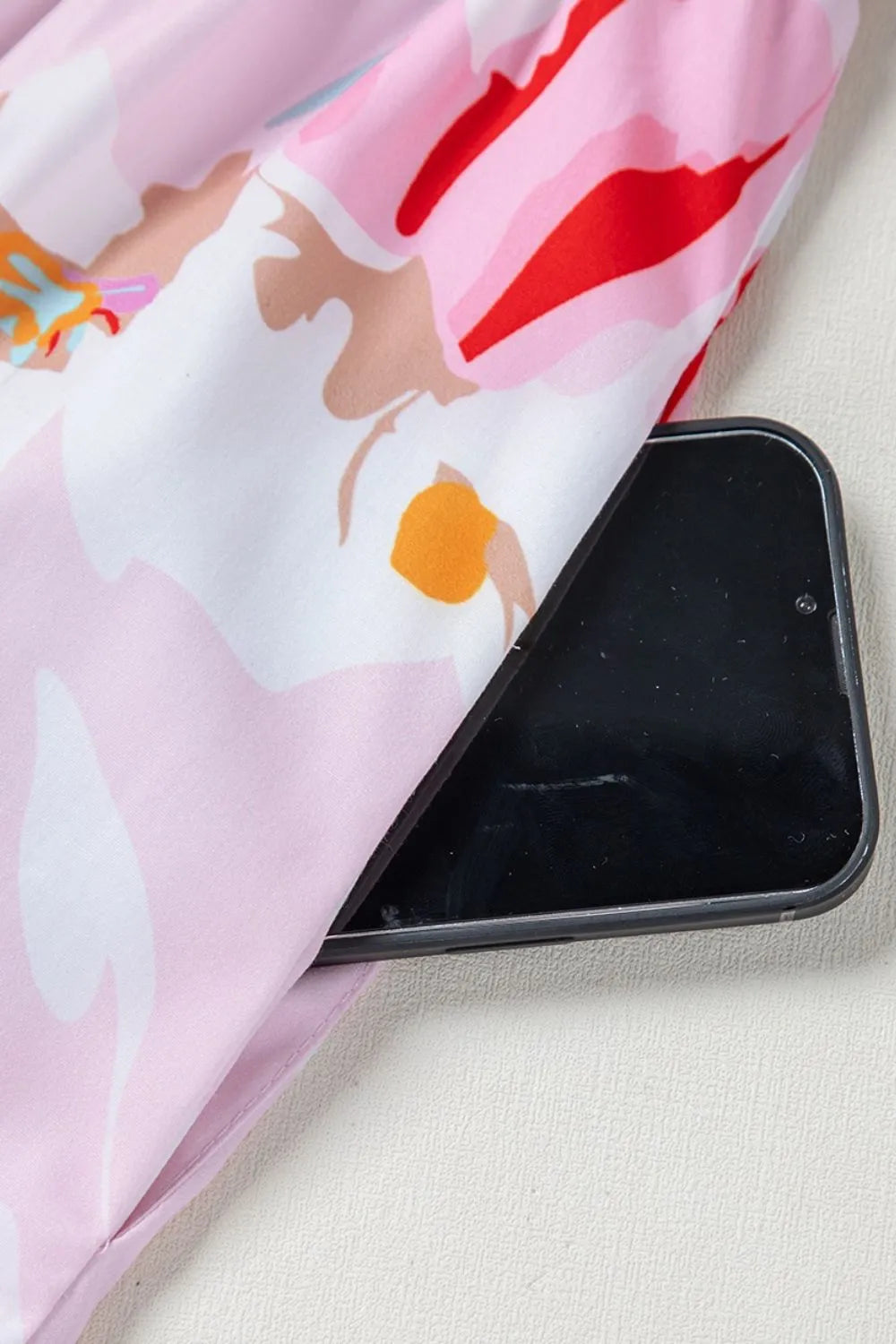 Floral Print Knotted Shoulder Smocked Maxi Dress