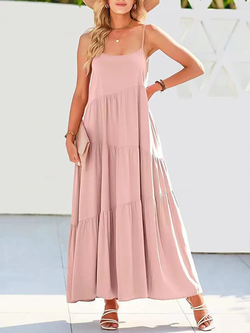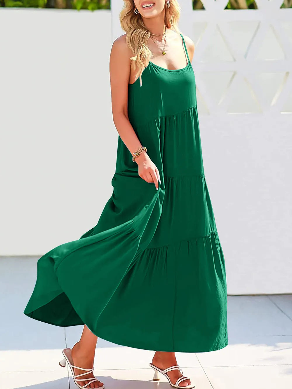 Full Size Ruched Tiered Spaghetti Strap Dress