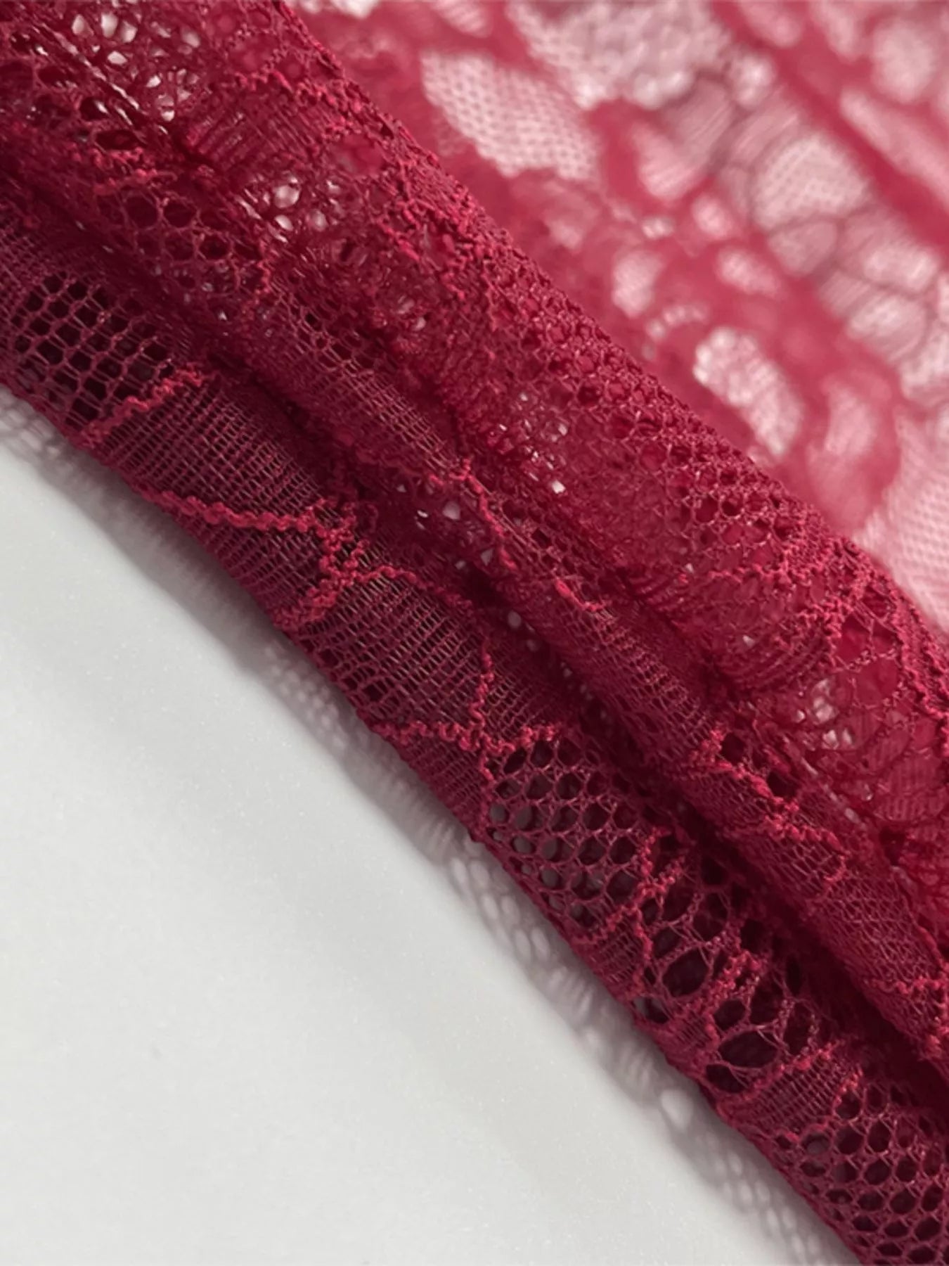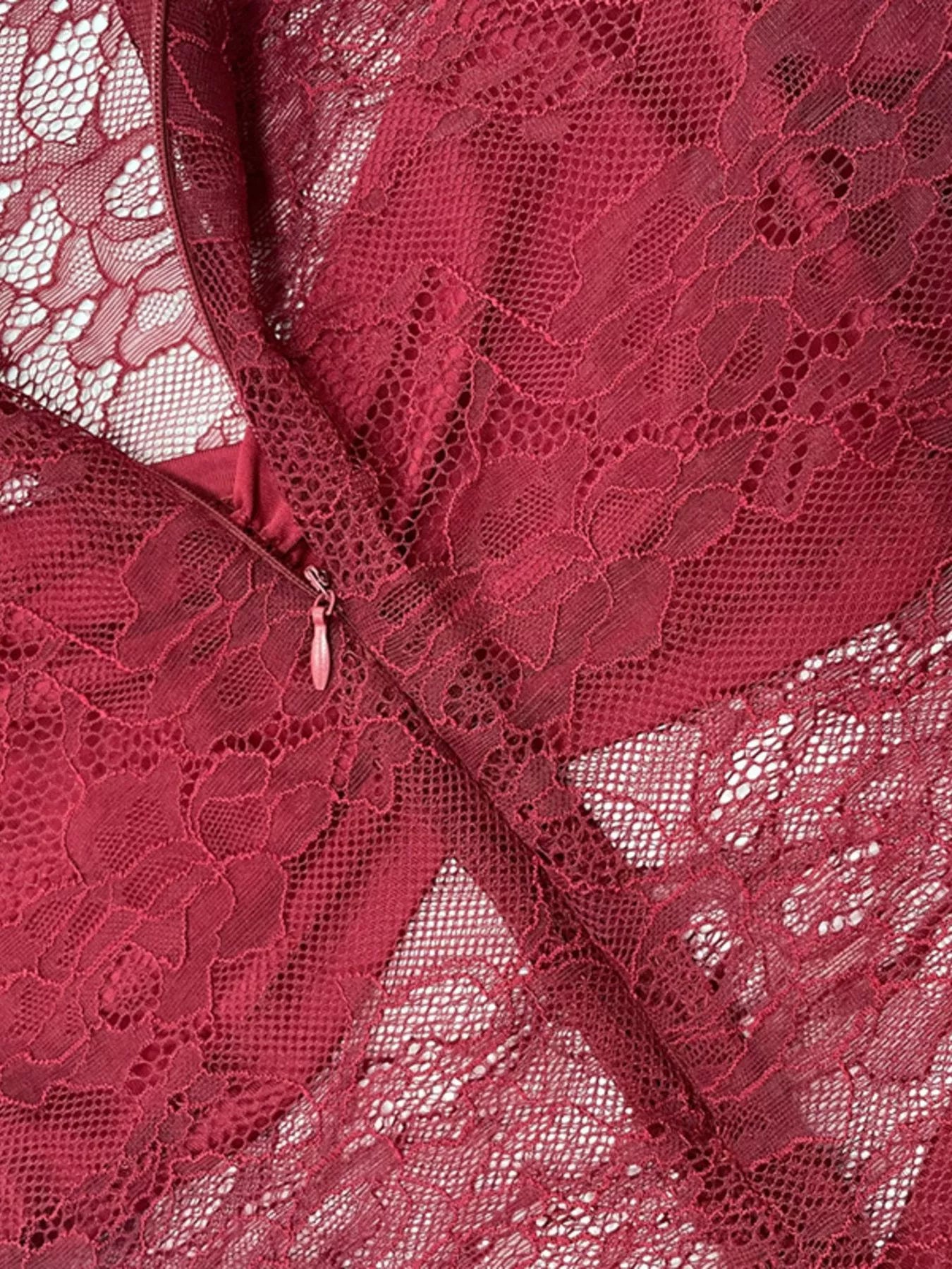 Lace Sheer Mock Neck Long Sleeve Maxi Dress