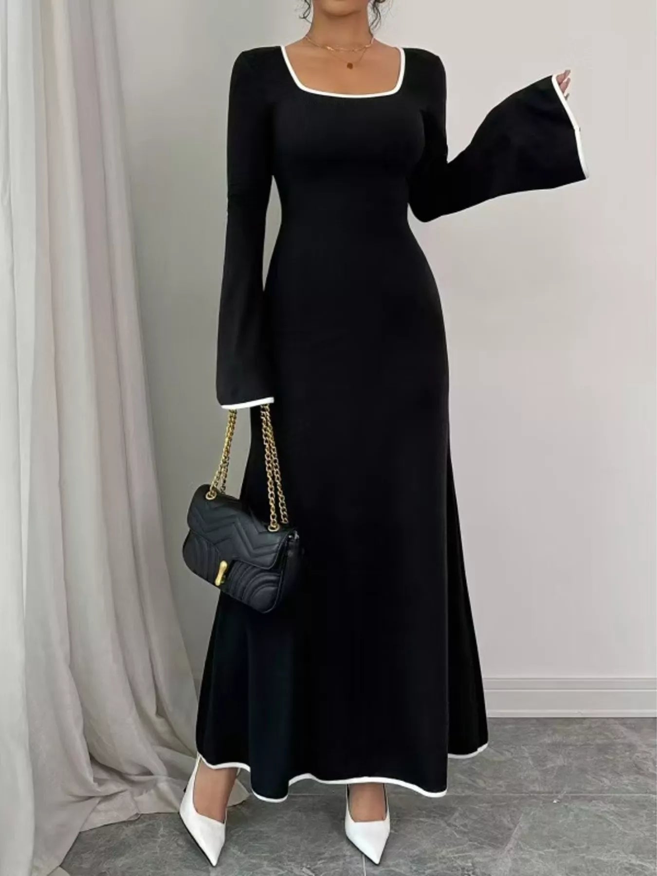 Square Neck Flare Sleeve Maxi Dress