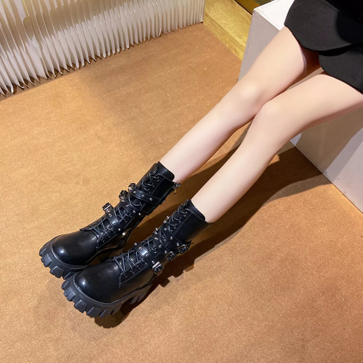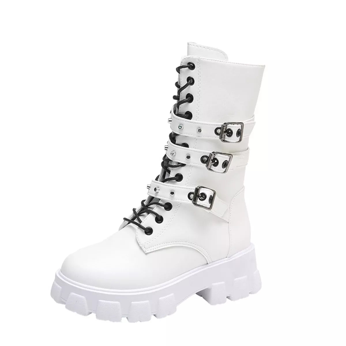Buckled Lace-Up Combat Boots