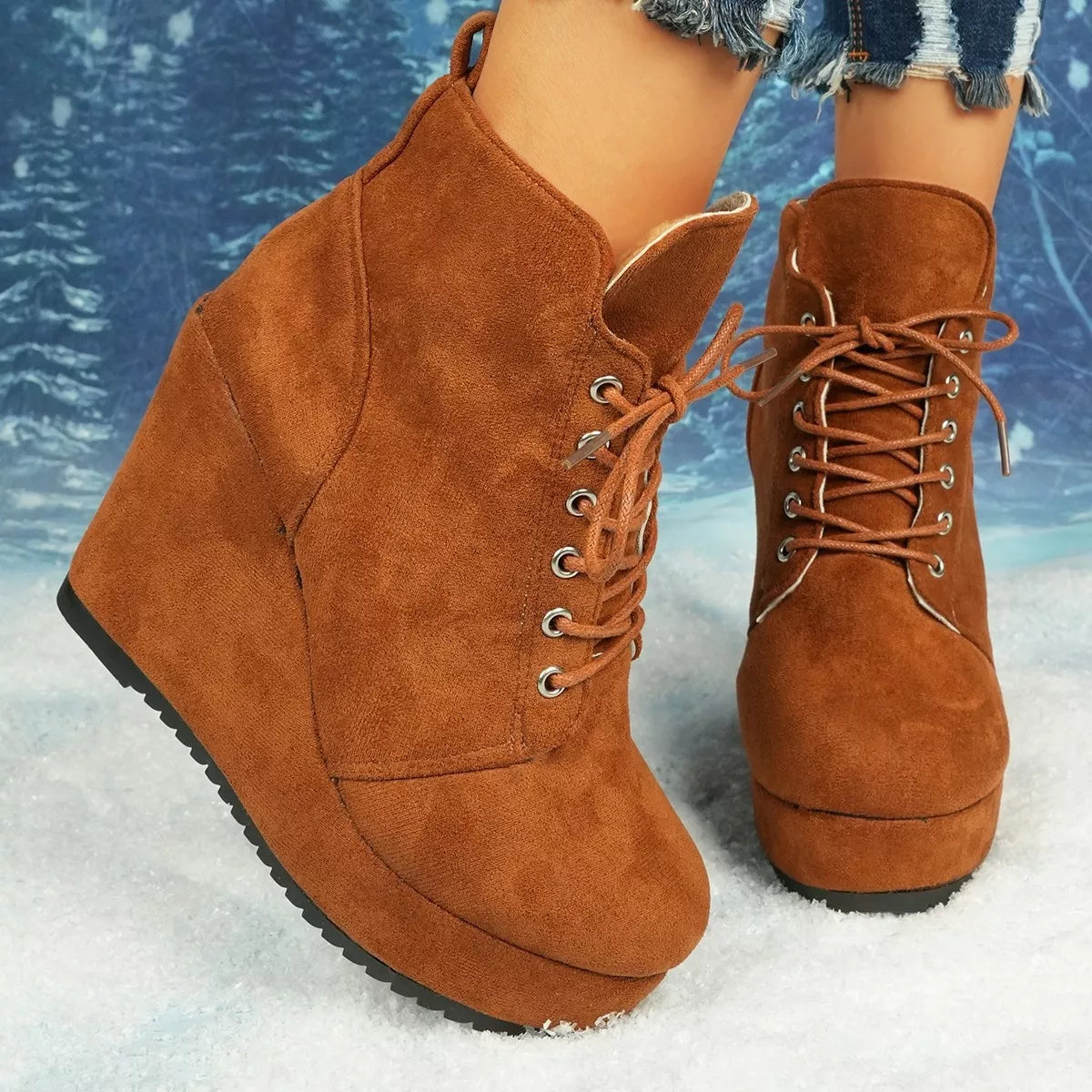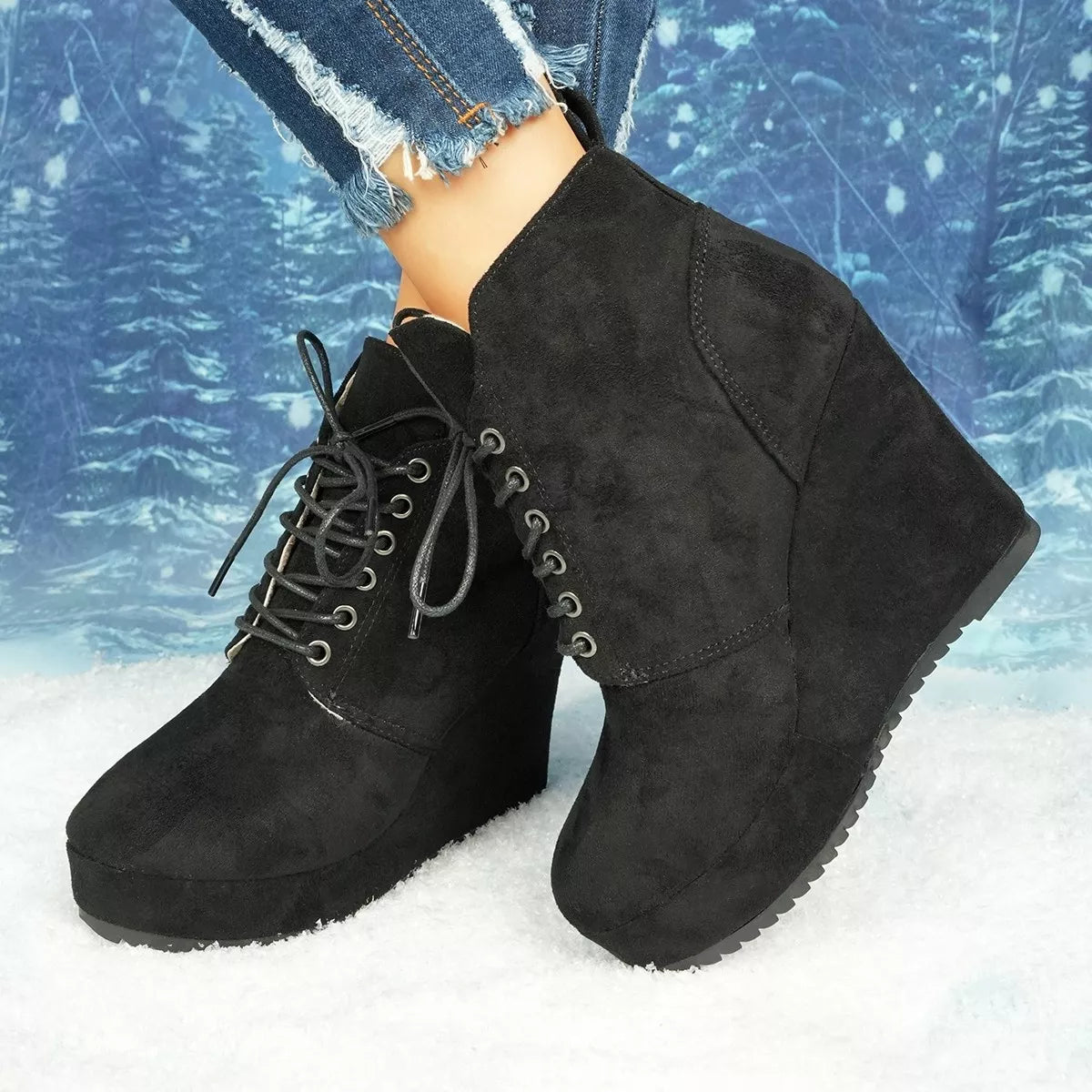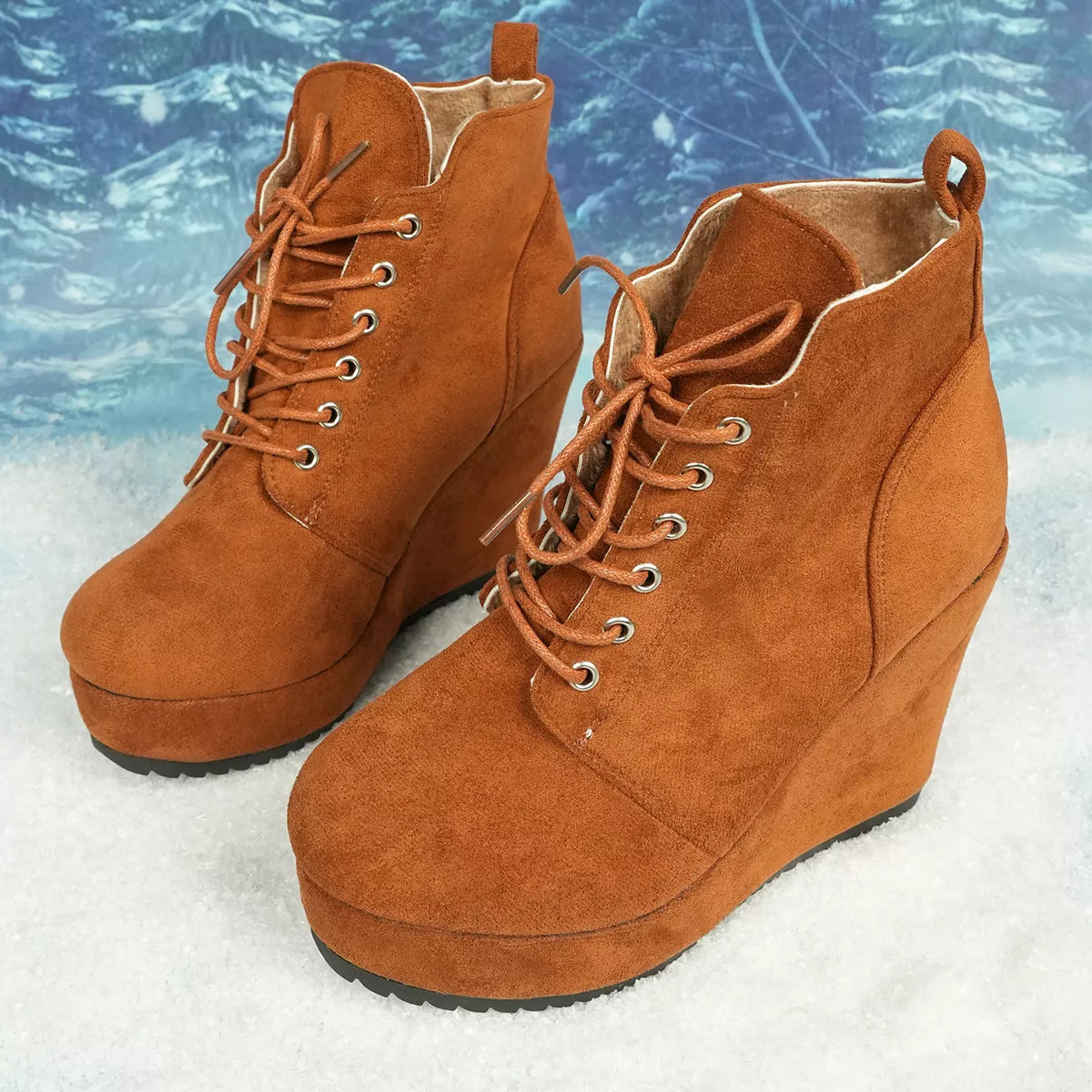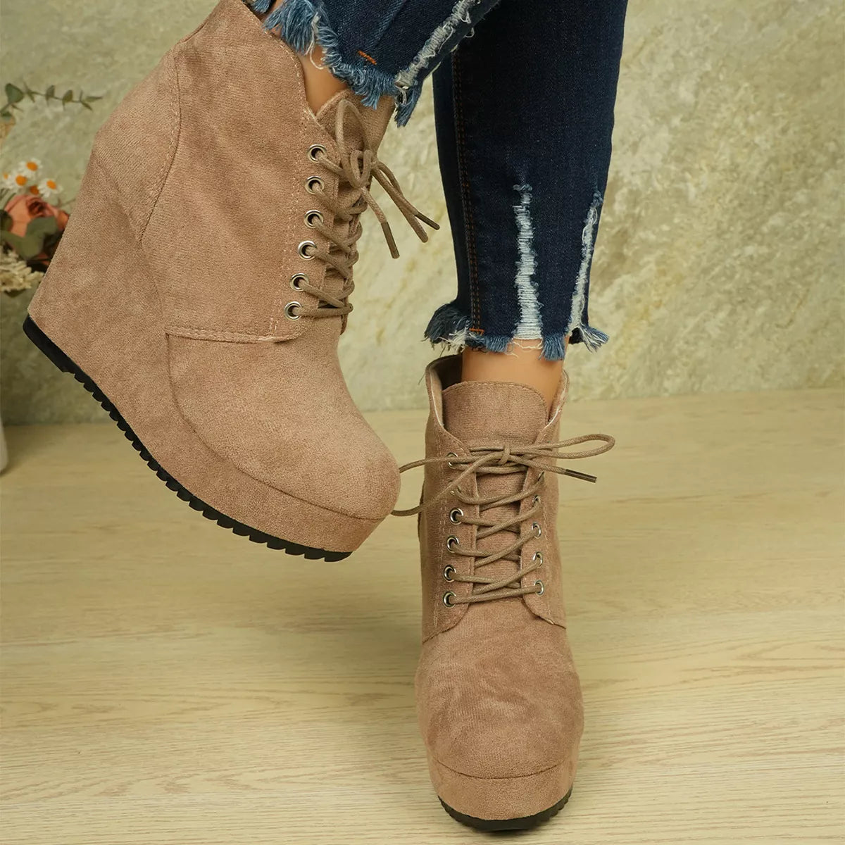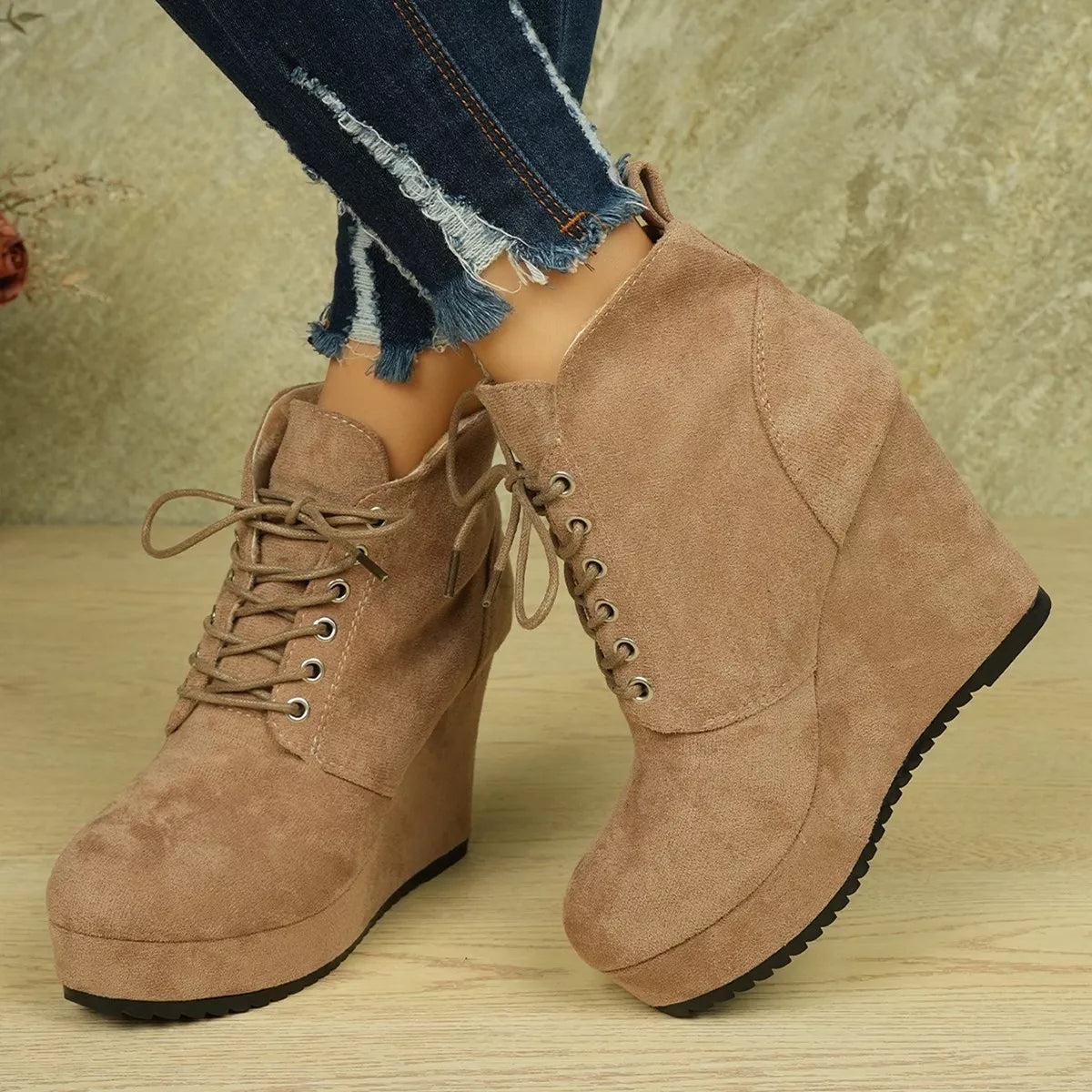 Lace-Up Wedge Ankle Boots