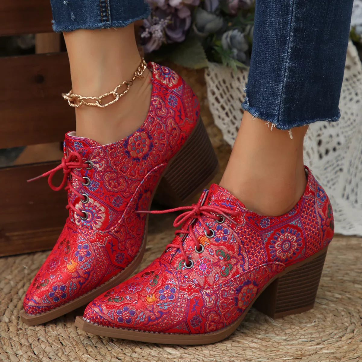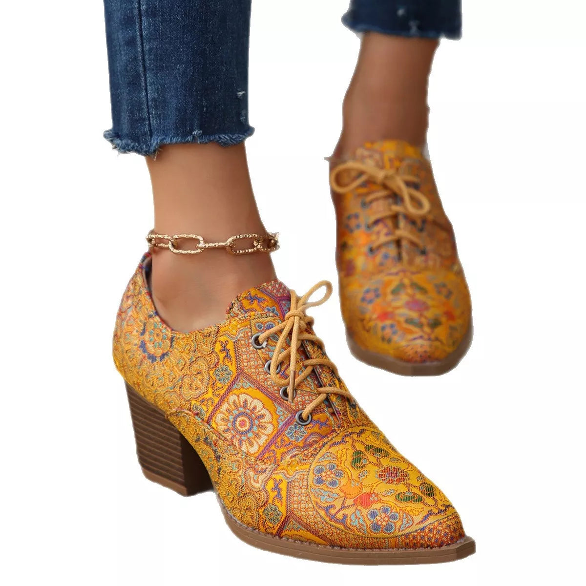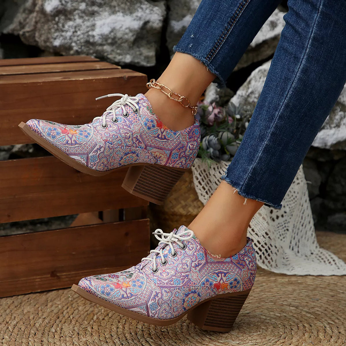 Point Toe Block Heels Ankle Boots