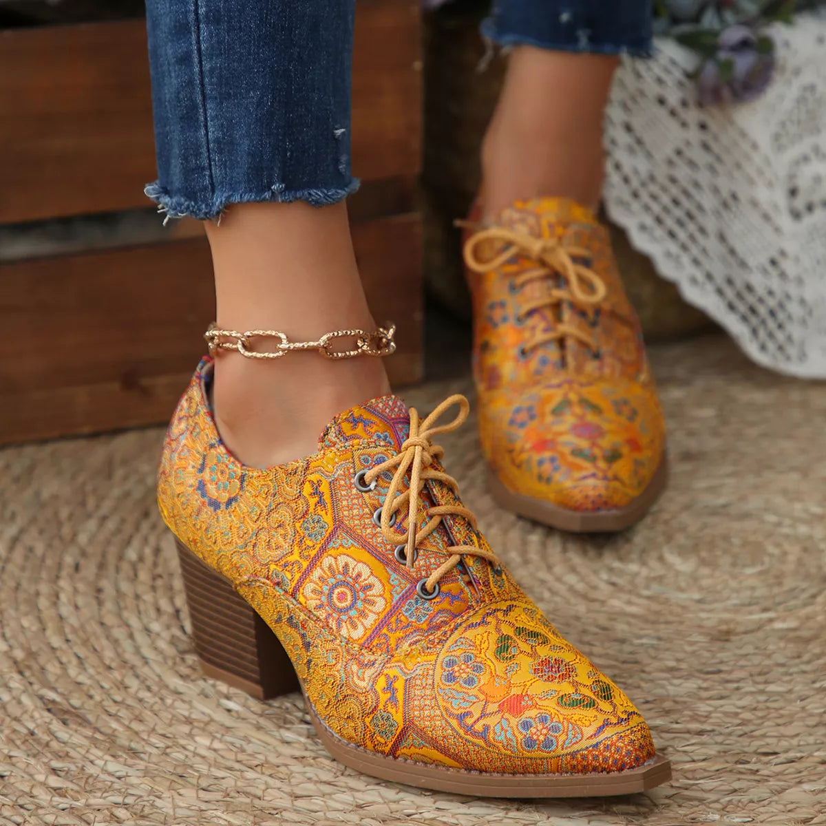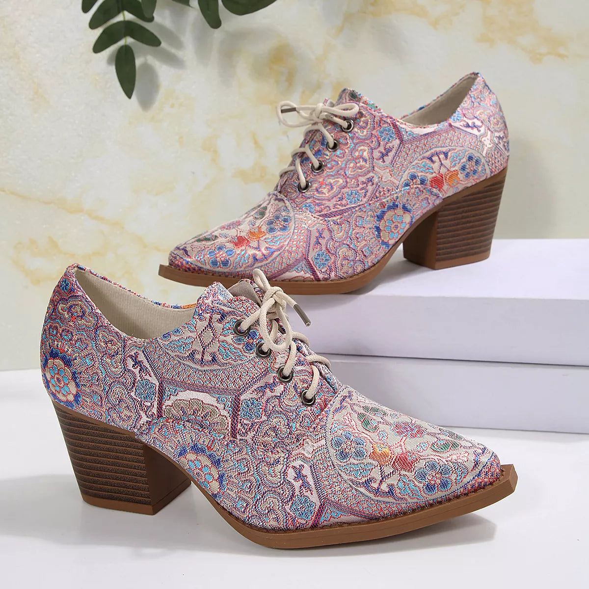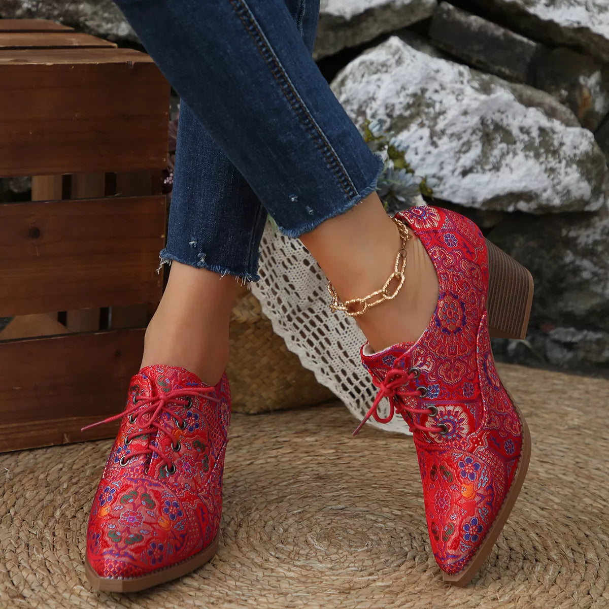 Point Toe Block Heels Ankle Boots