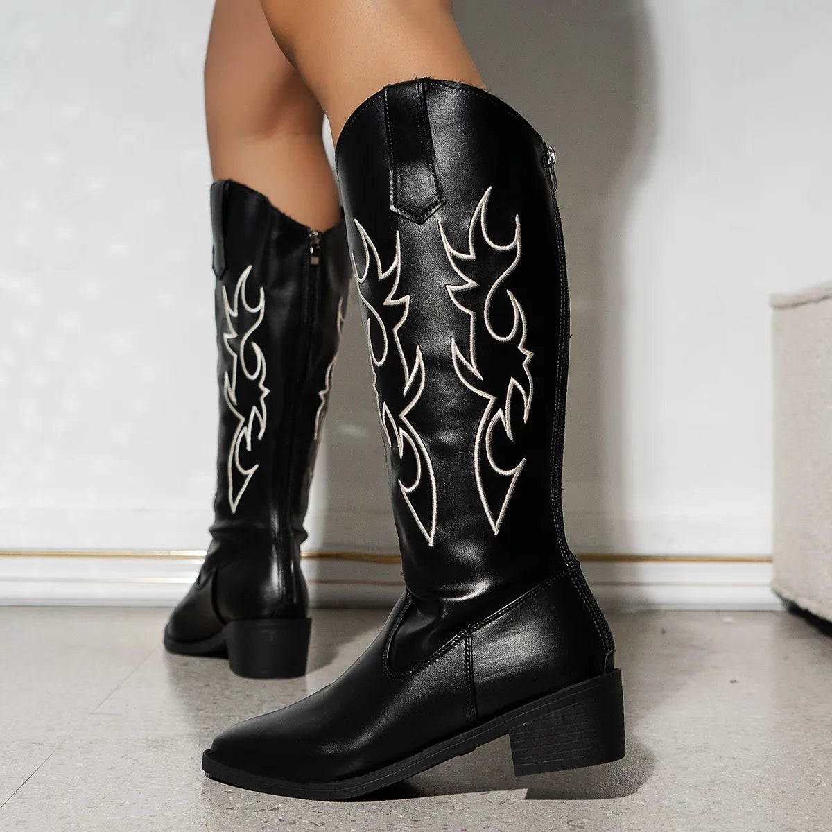 Point Toe Block Heels Boots