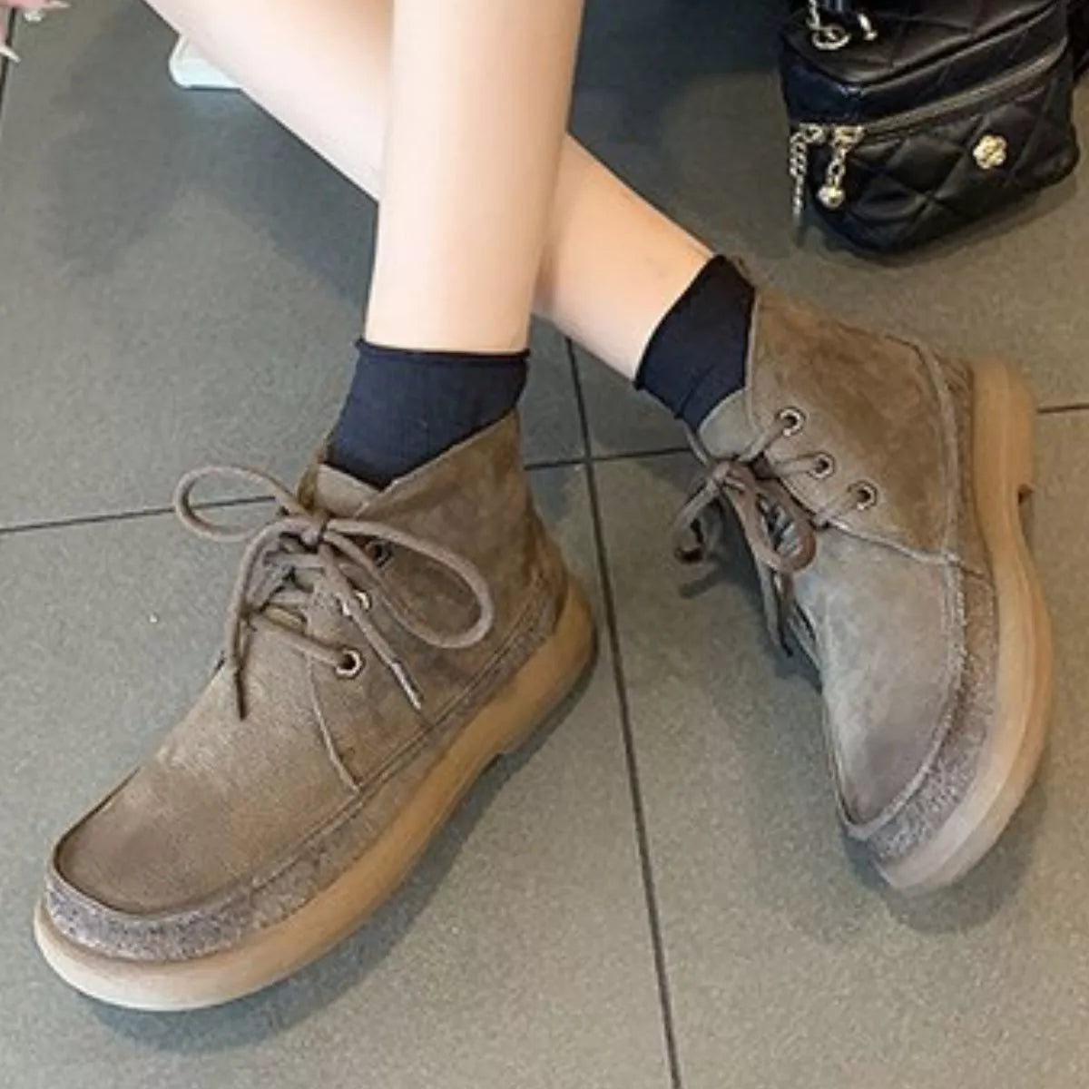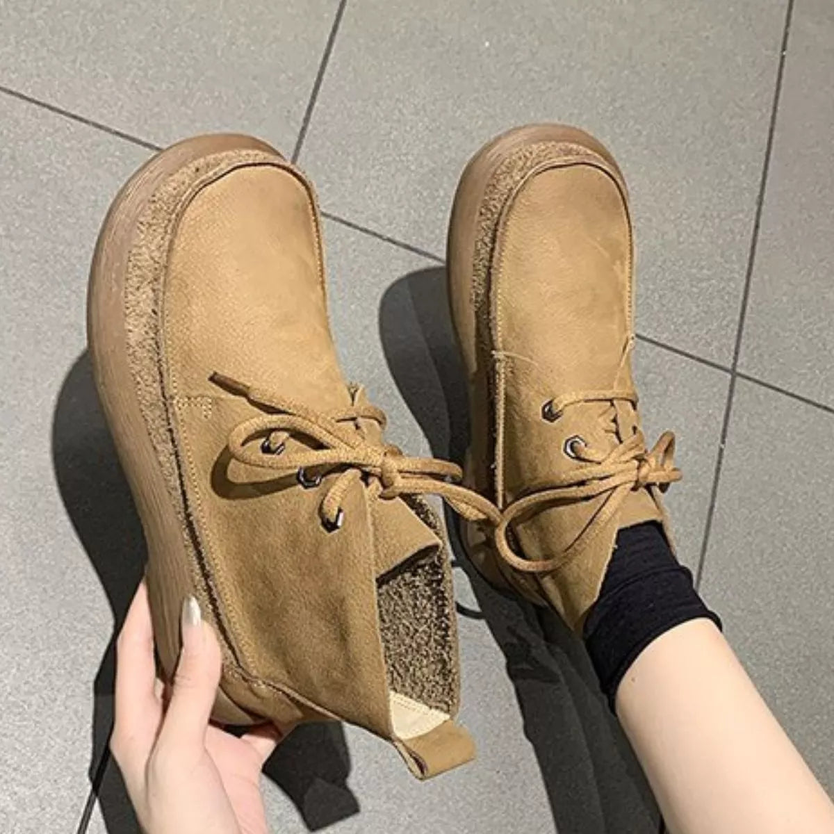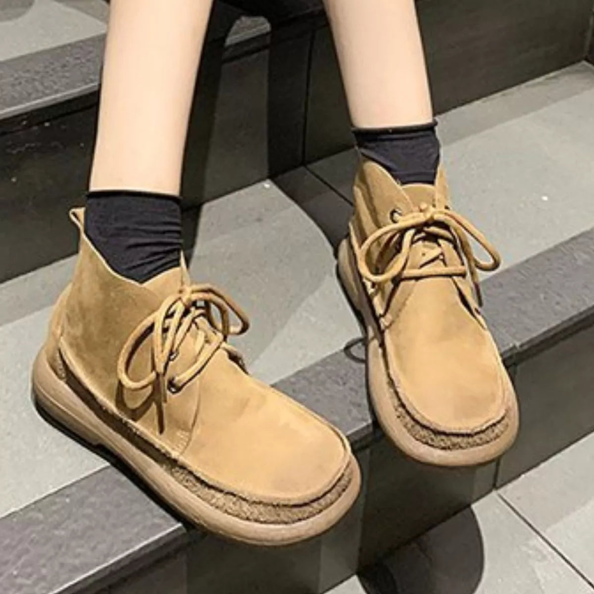Round Toe Lace-Up Ankle Boots