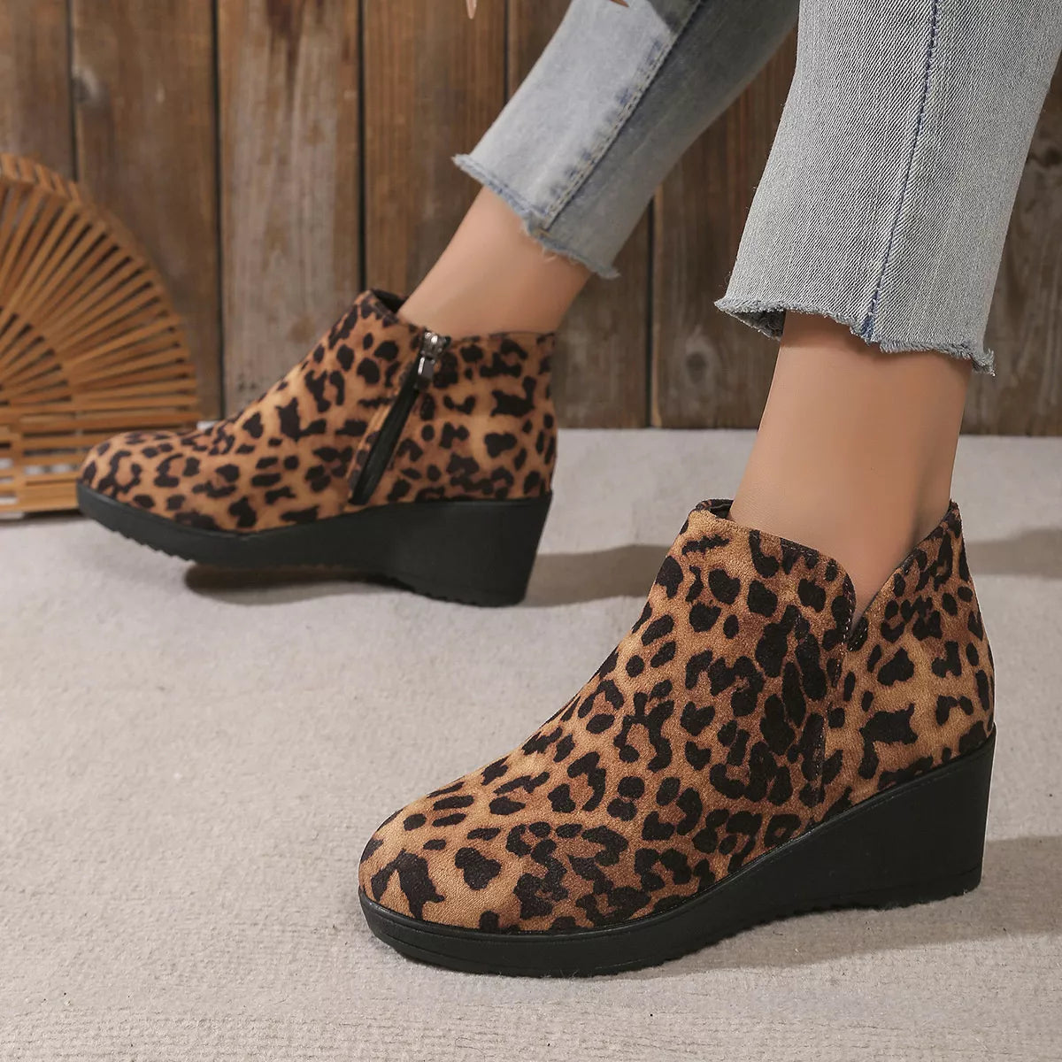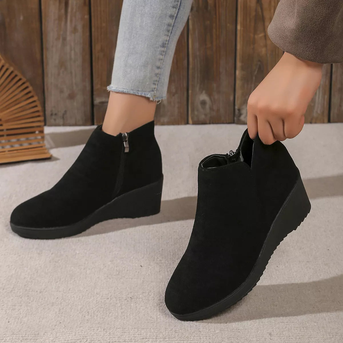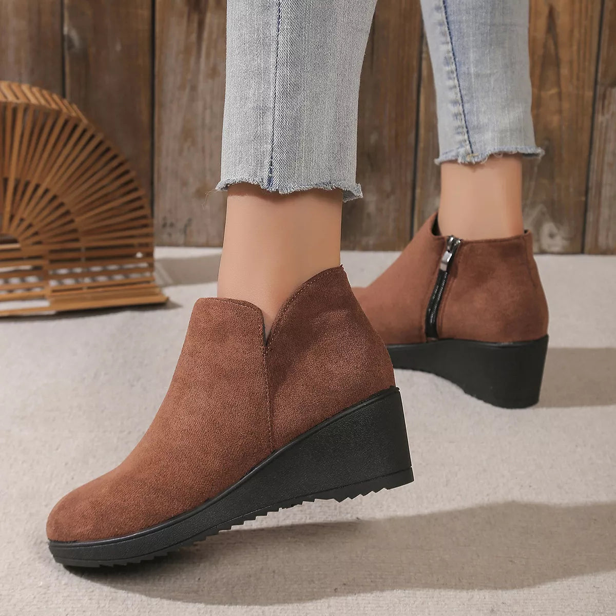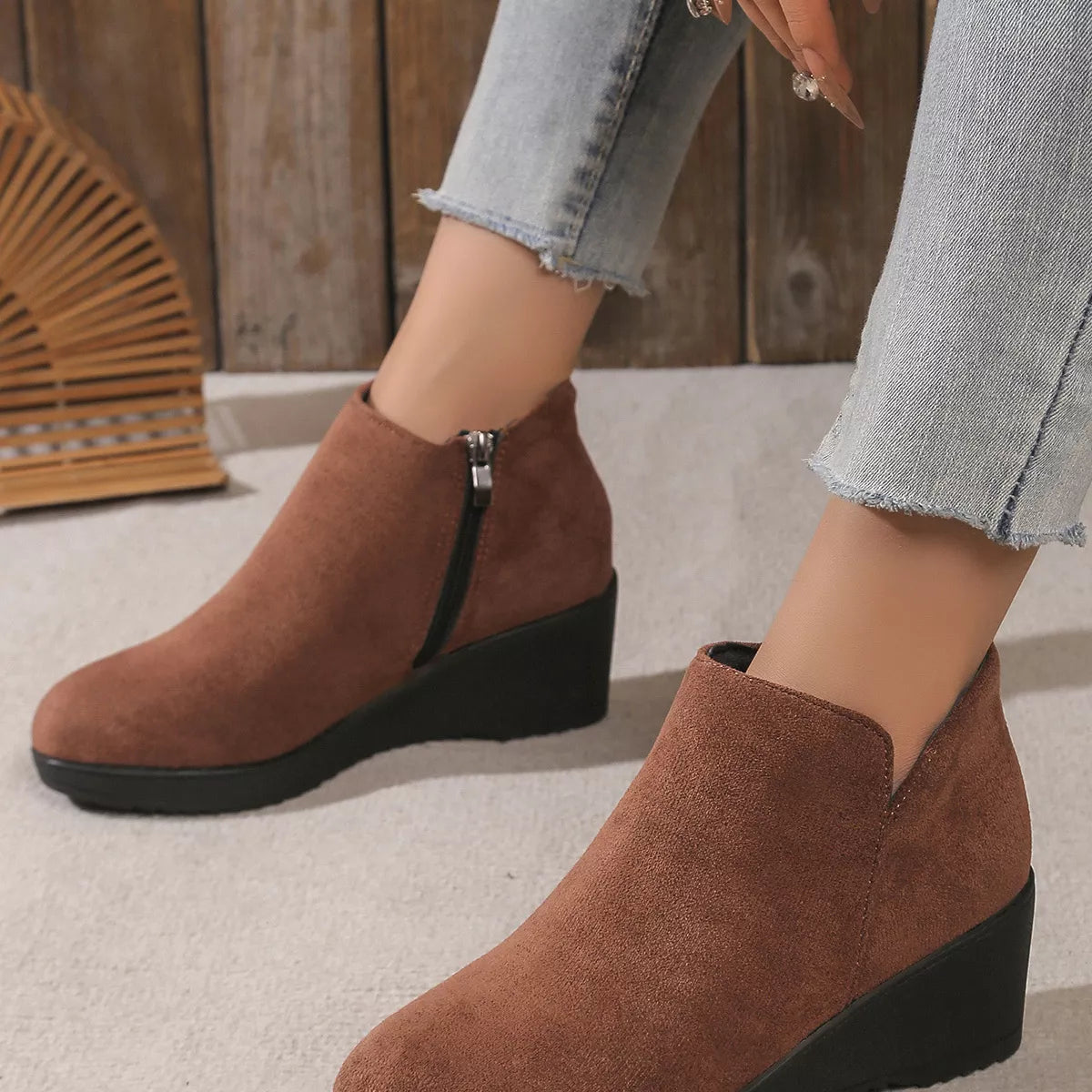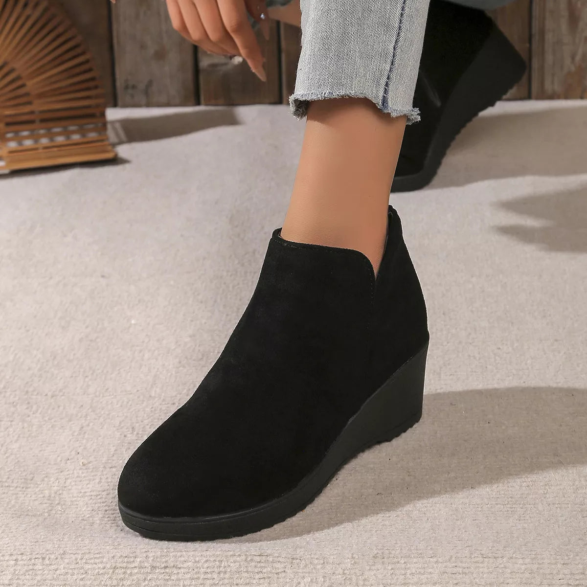 Round Toe Wedge Ankle Boots