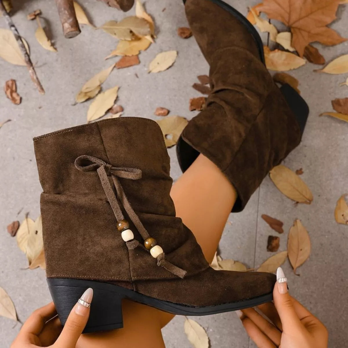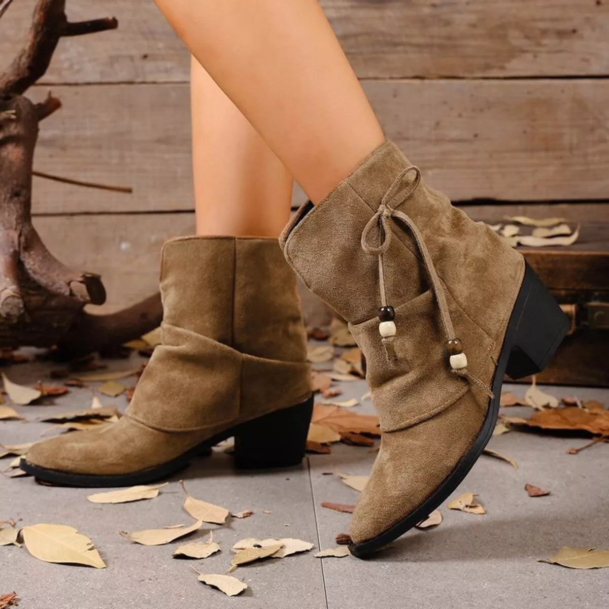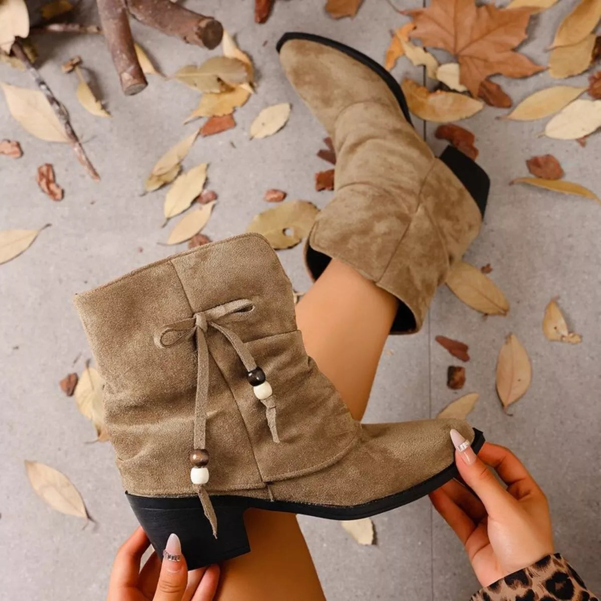 Suede Ankle Boots with Bow Accent