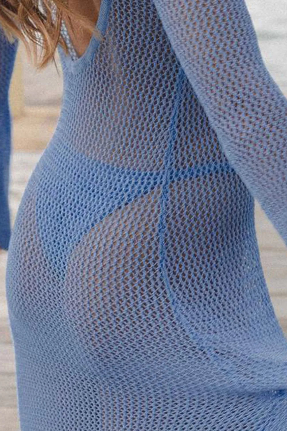 Openwork Backless Flare Sleeve Cover-Up Dress