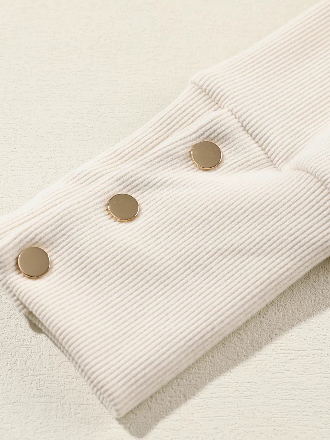Collared Split Neck Ribbed 2pcs Outfit Set