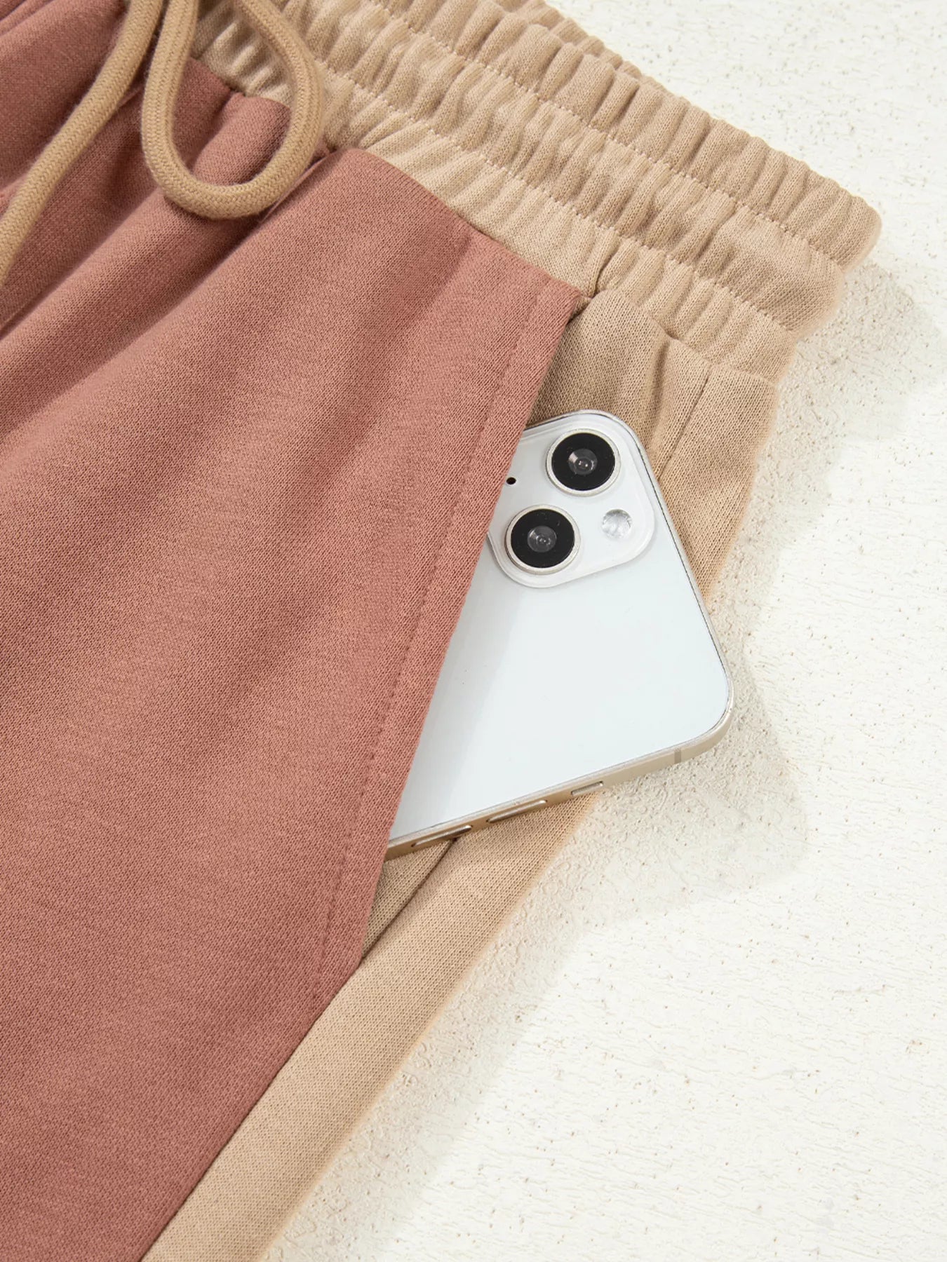 Color Block Long Sleeve Crop Top Drawstring Pant Set