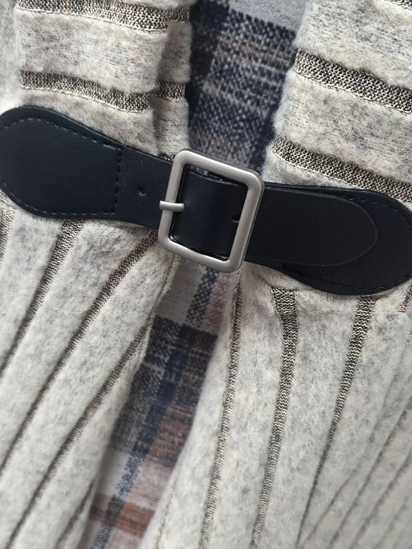 Full Size Plaid Dress & Ribbed Knit Cardigan Set Plus Size