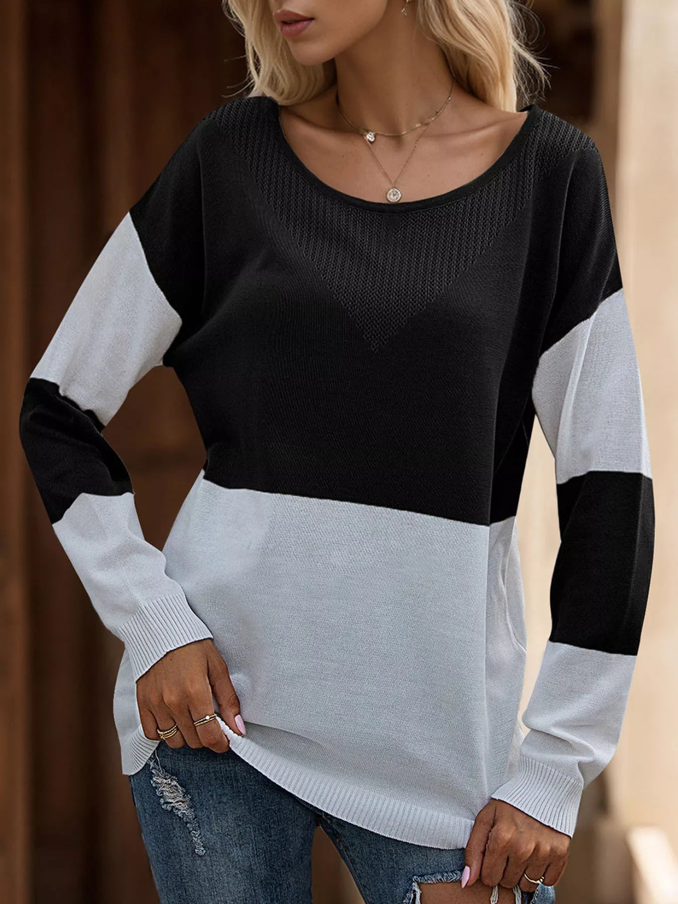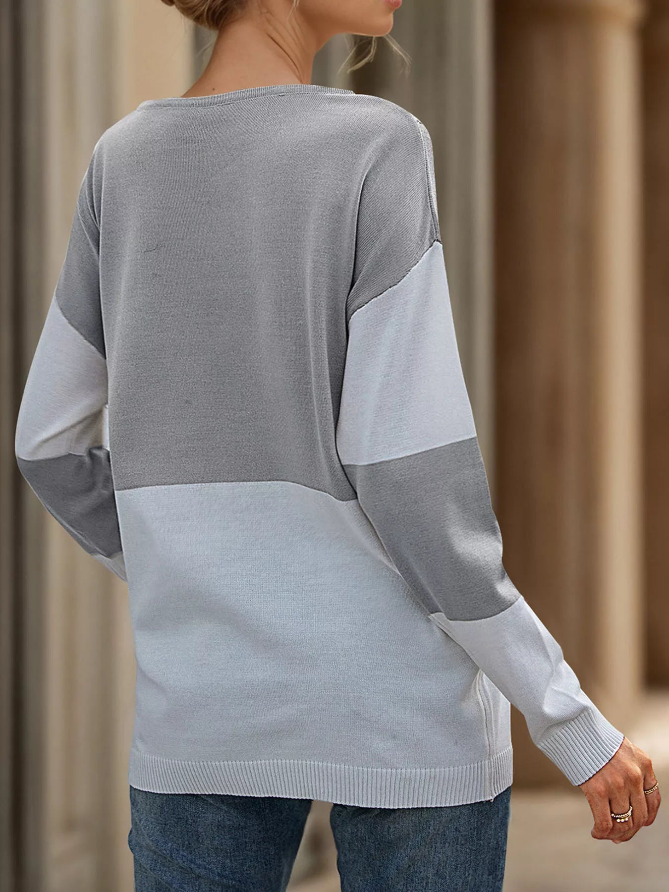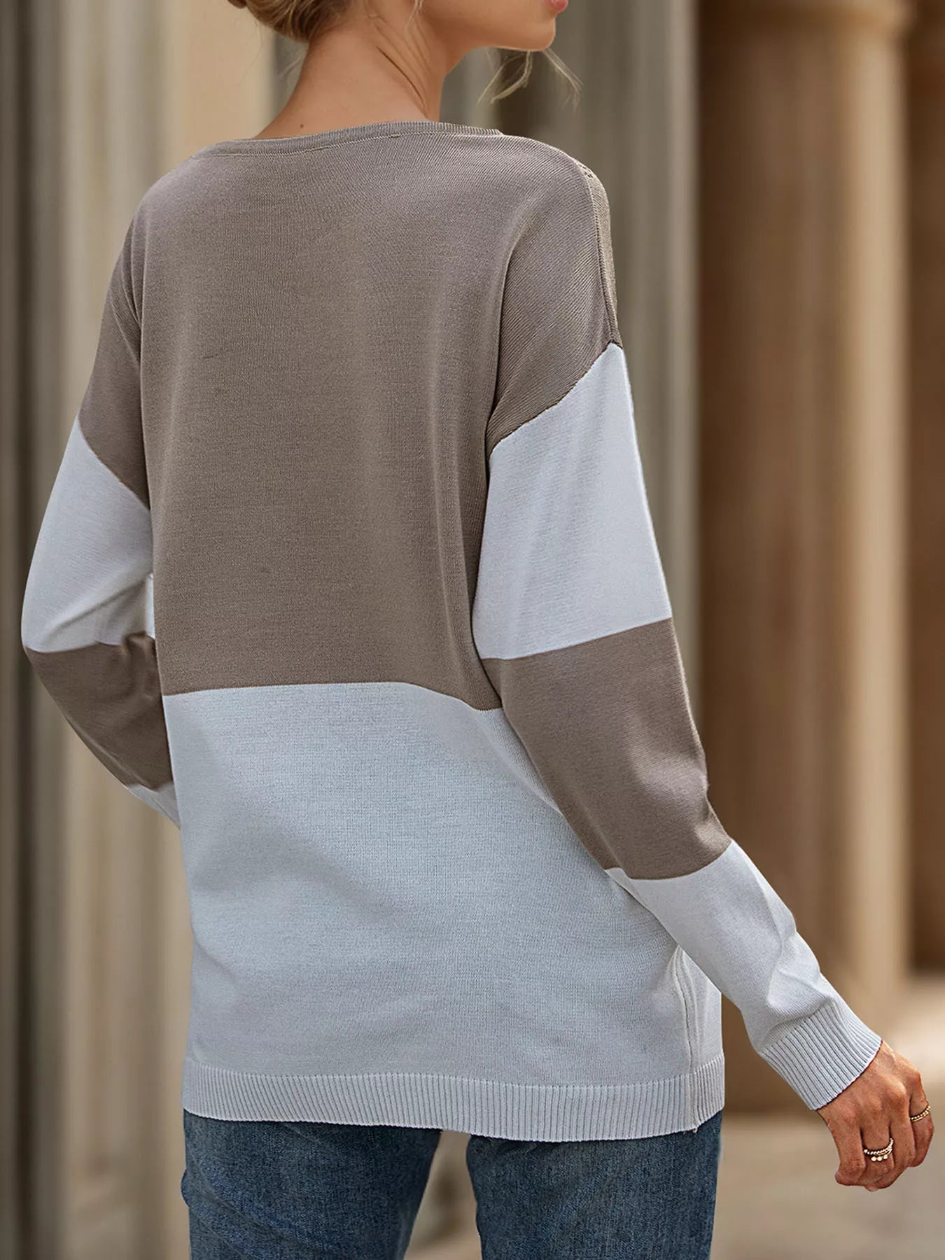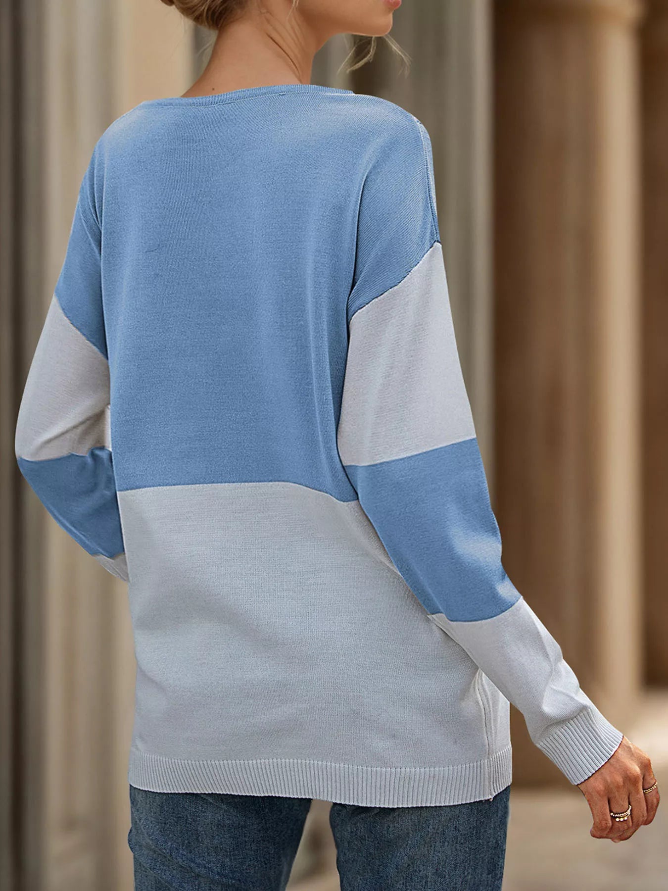 Color Block V-Neck Knit Top