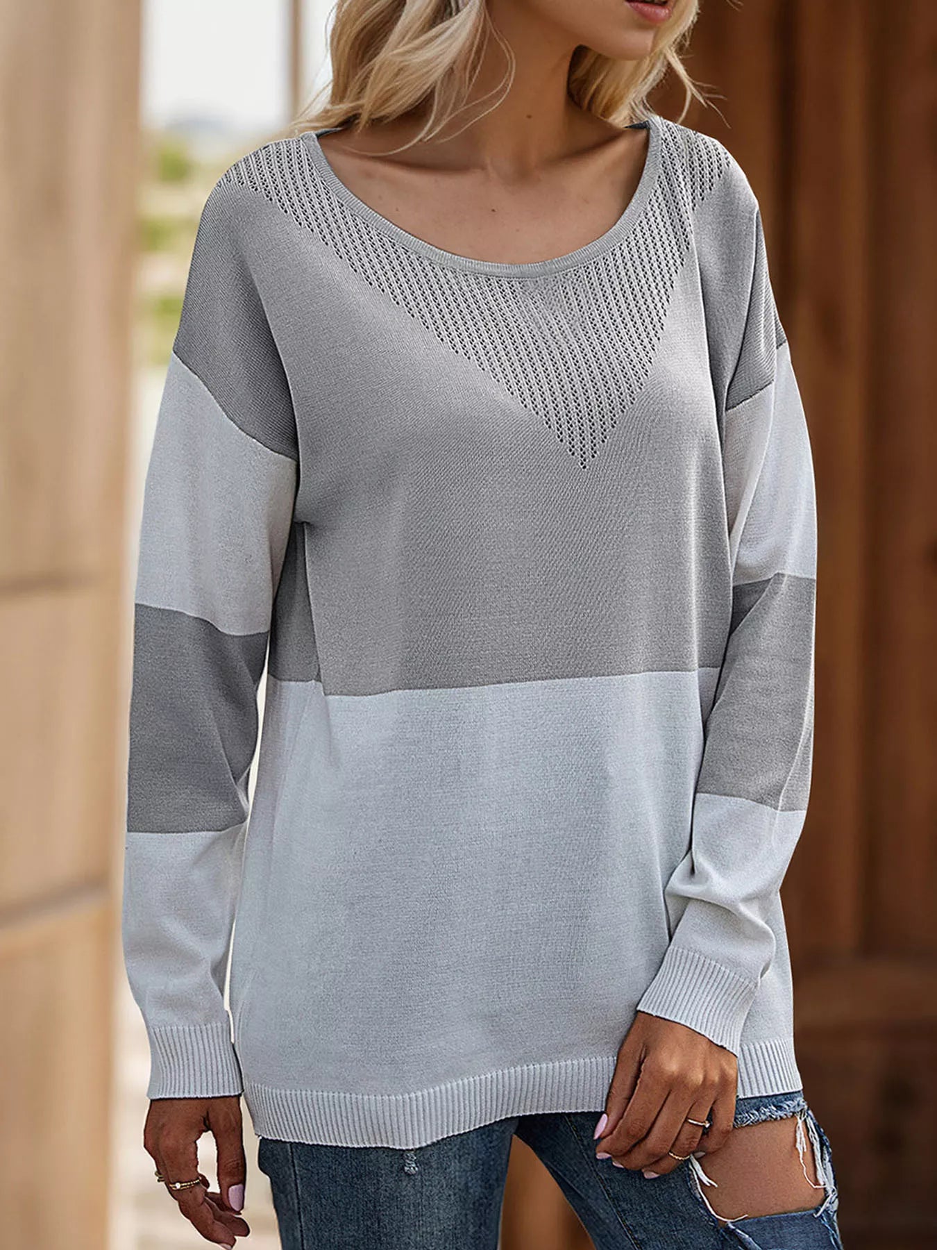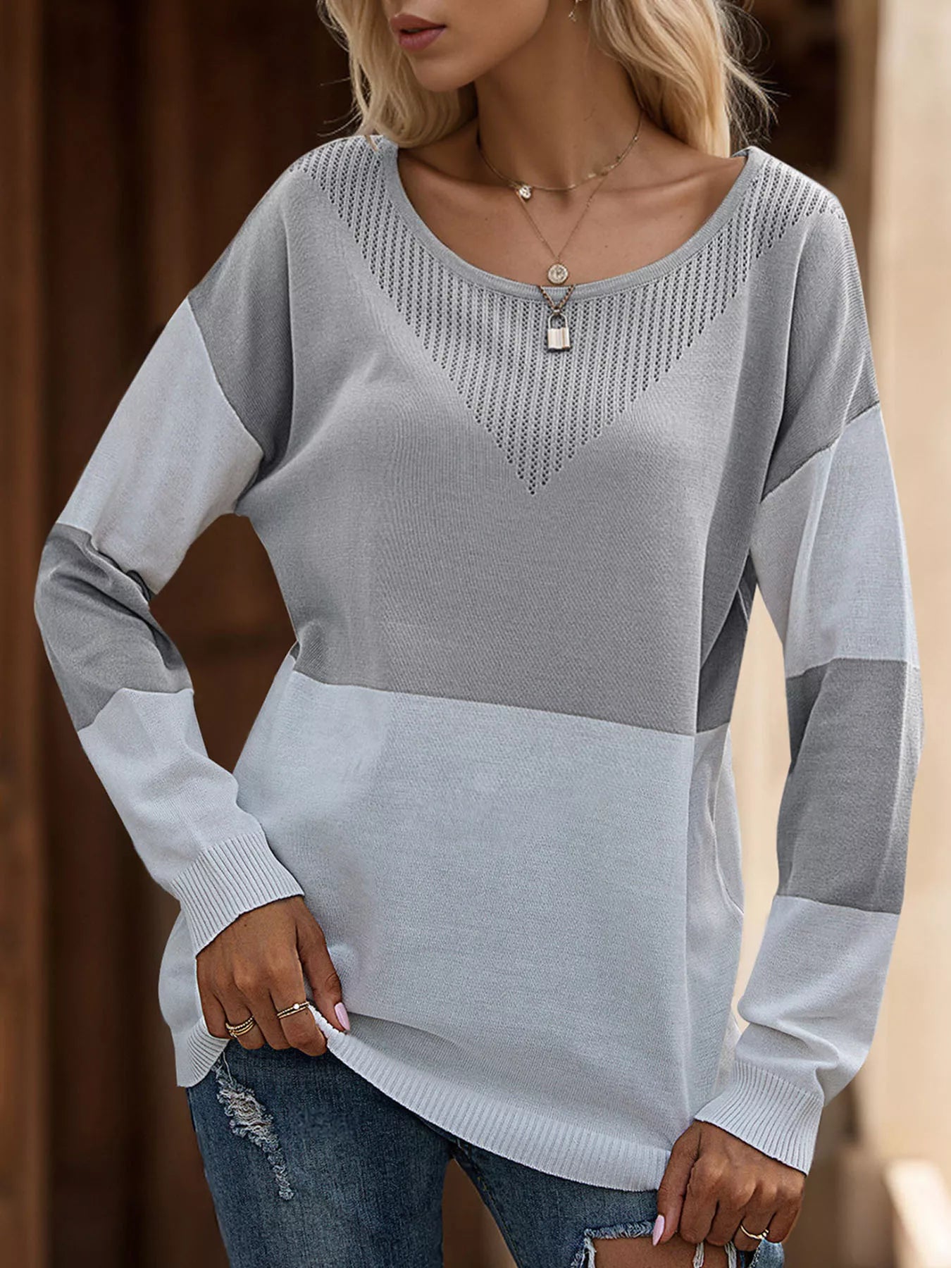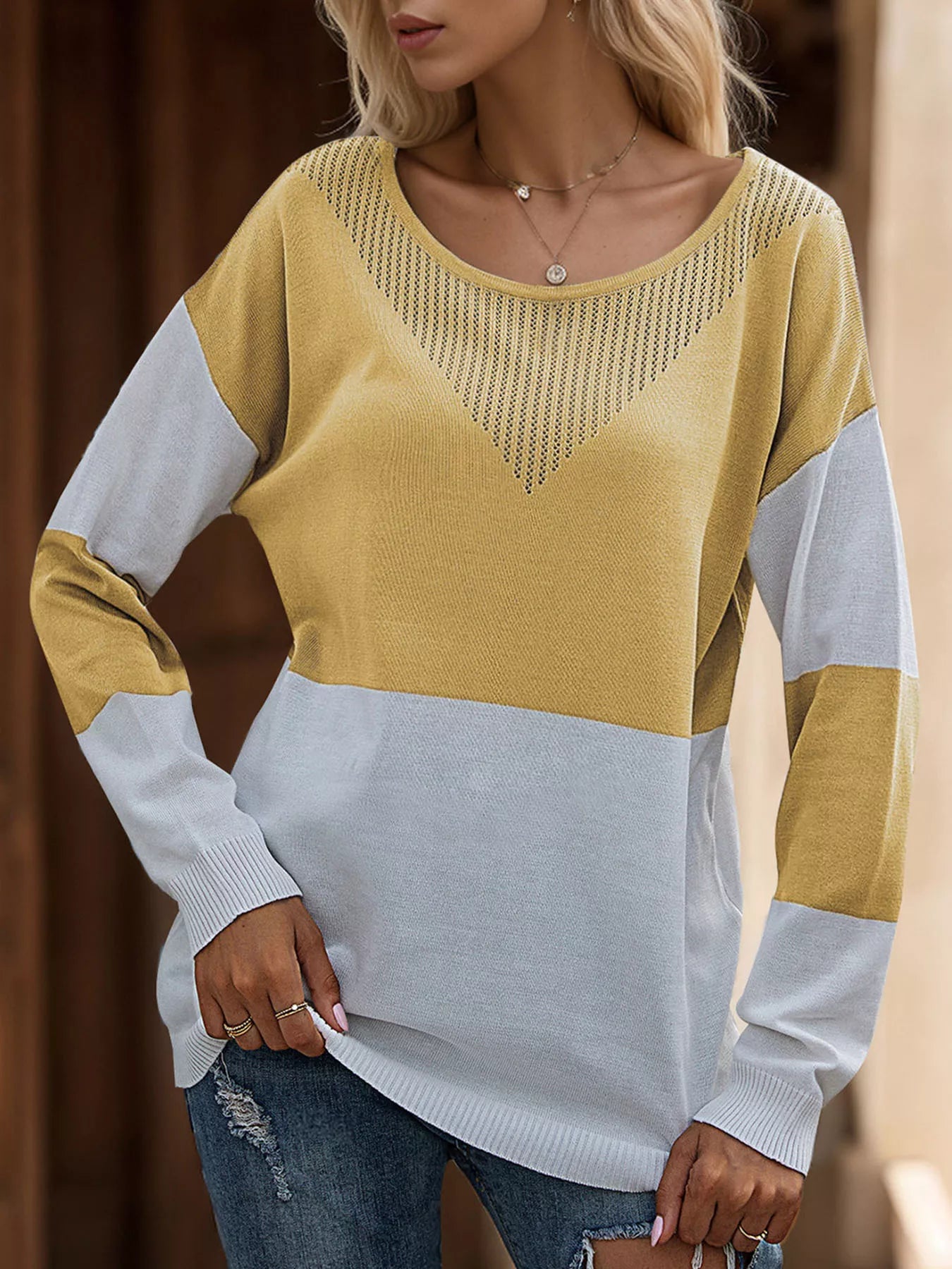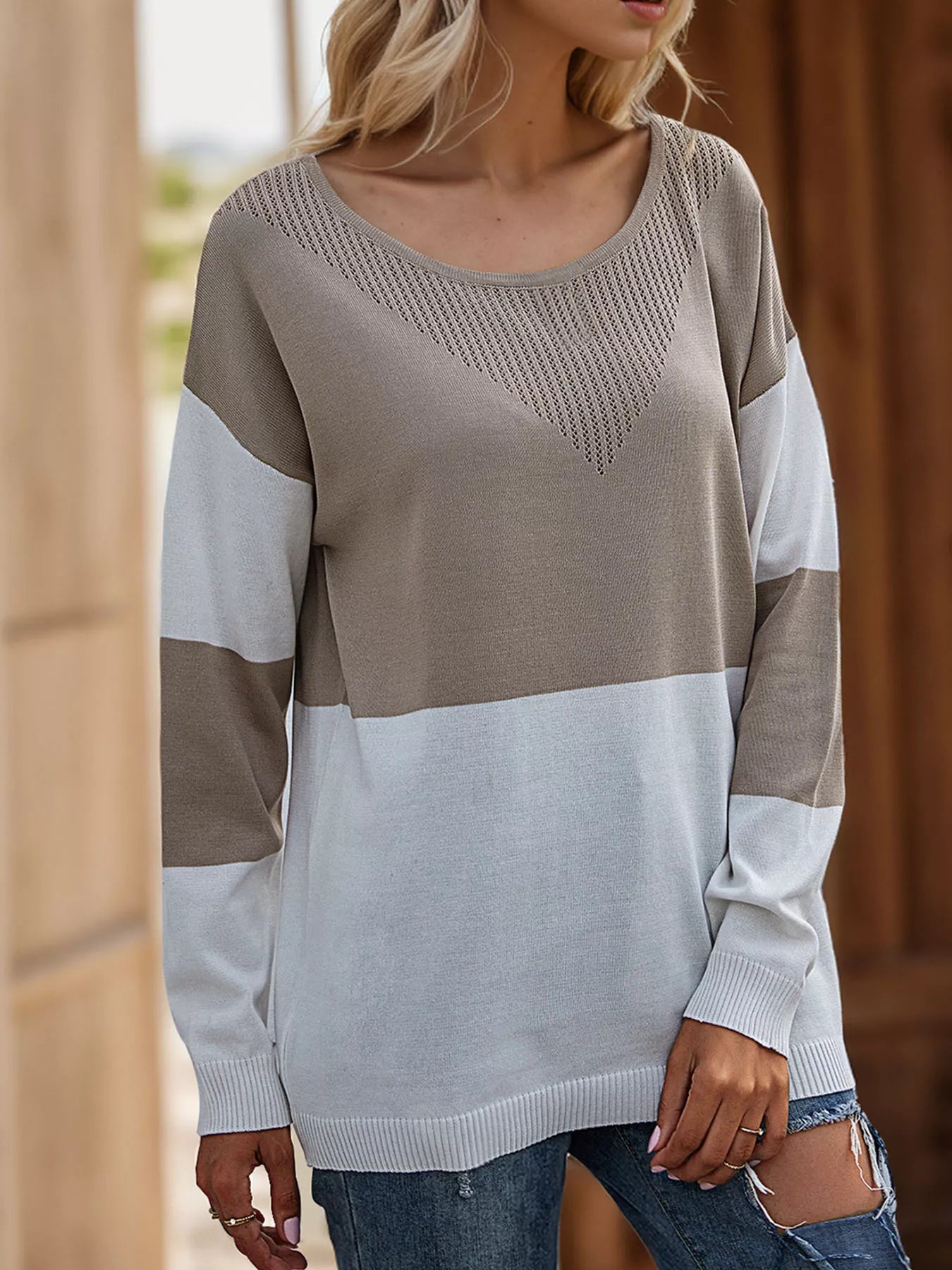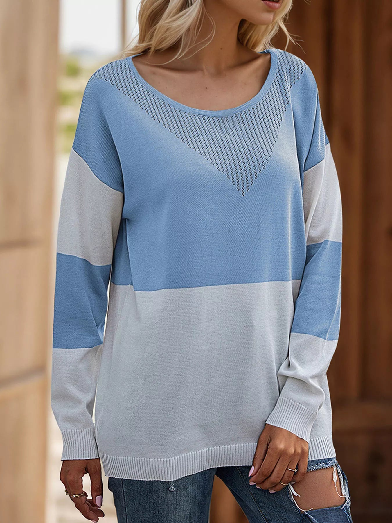 Color Block V-Neck Knit Top