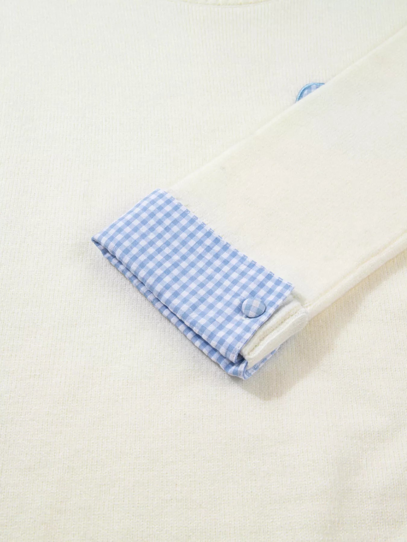 Plaid Heart Embroidered Cuffed Drop Shoulder Crew Neck Sweater