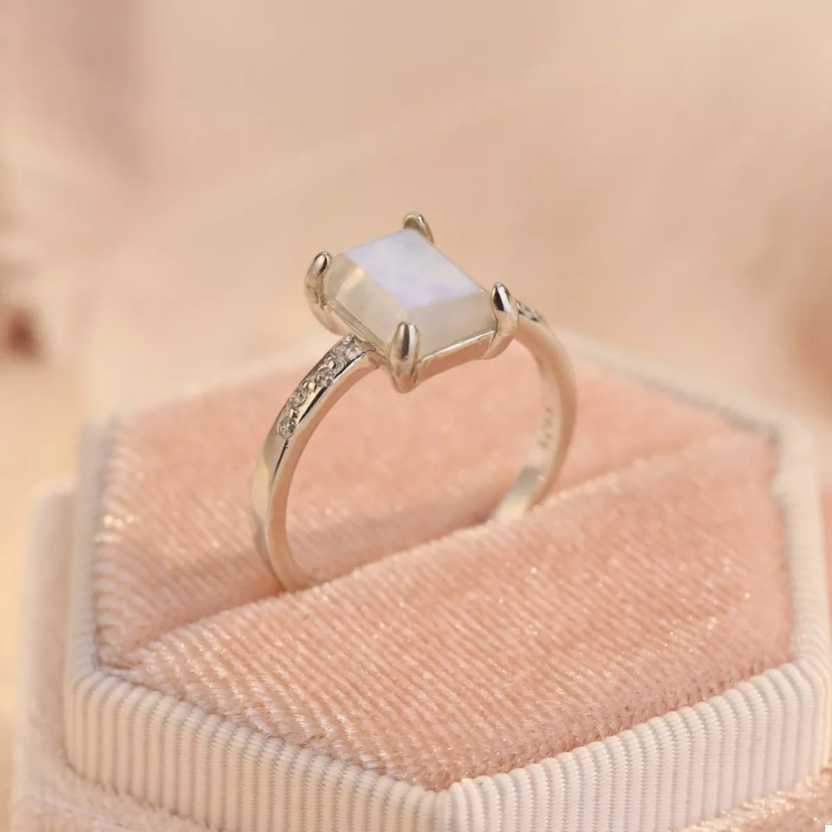 925 Sterling Silver Zircon Rectangle Ring