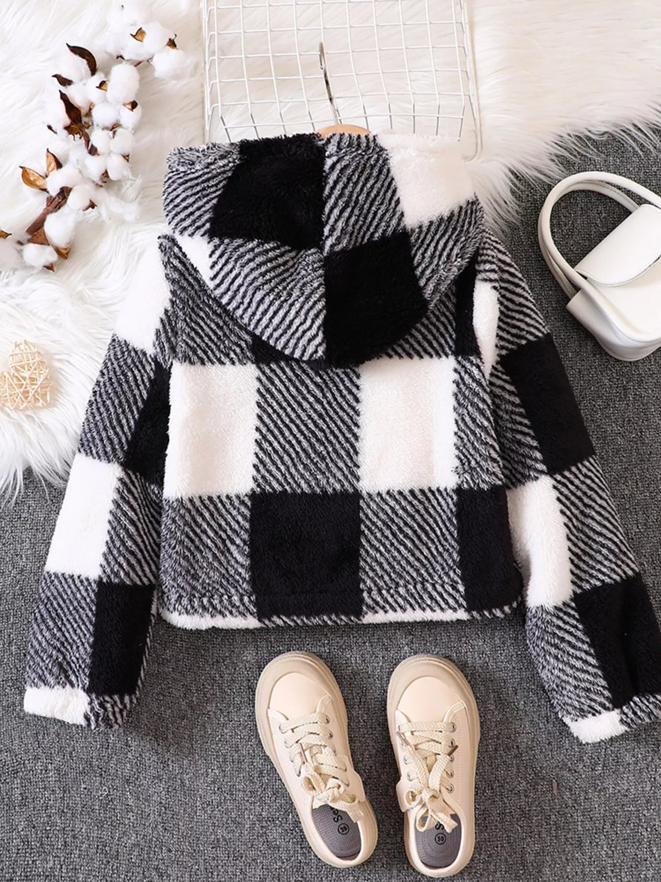 Children's Cozy Plaid Hooded Fleece Jacket