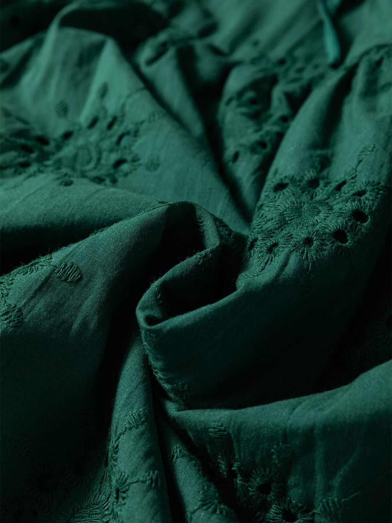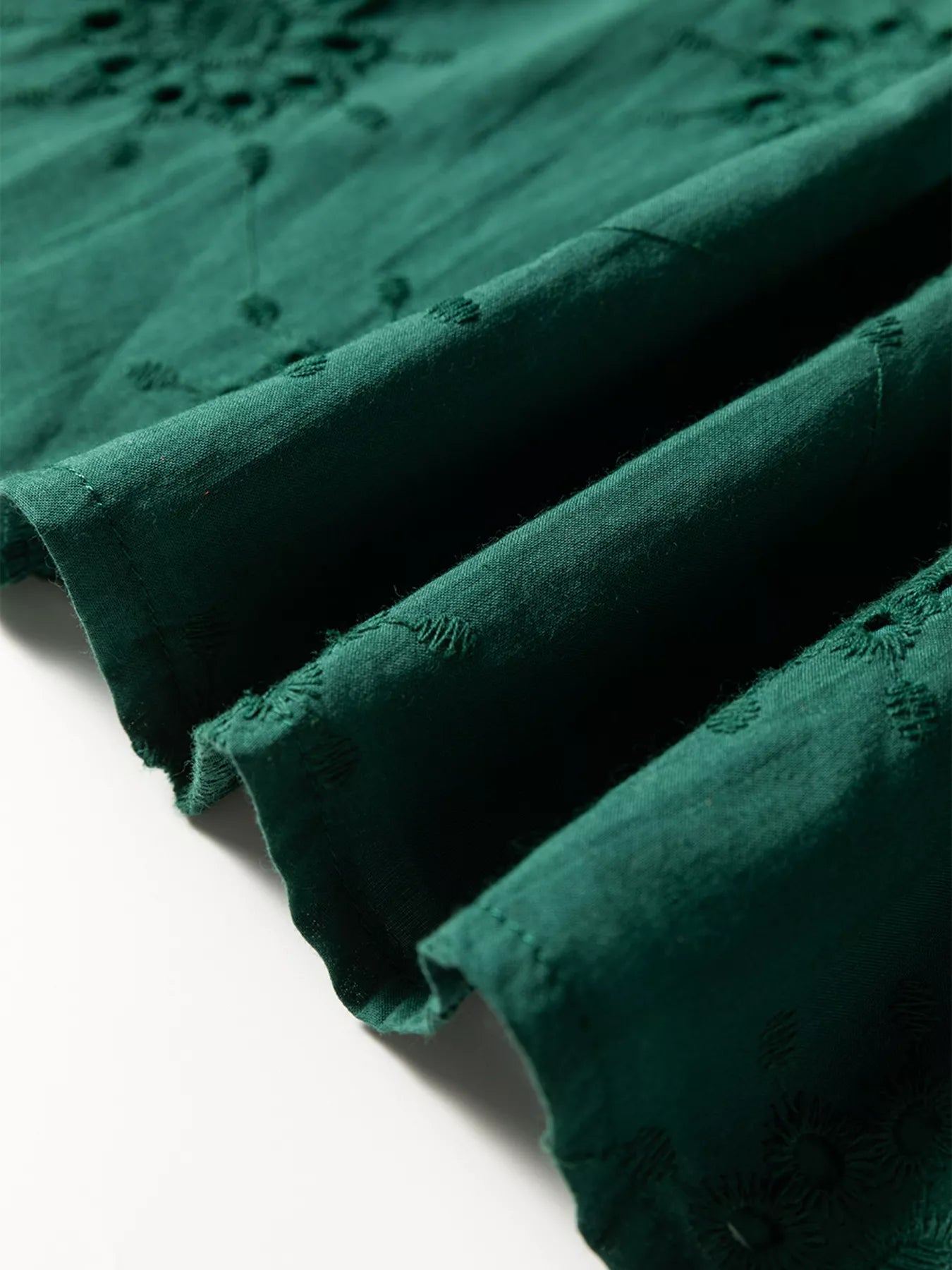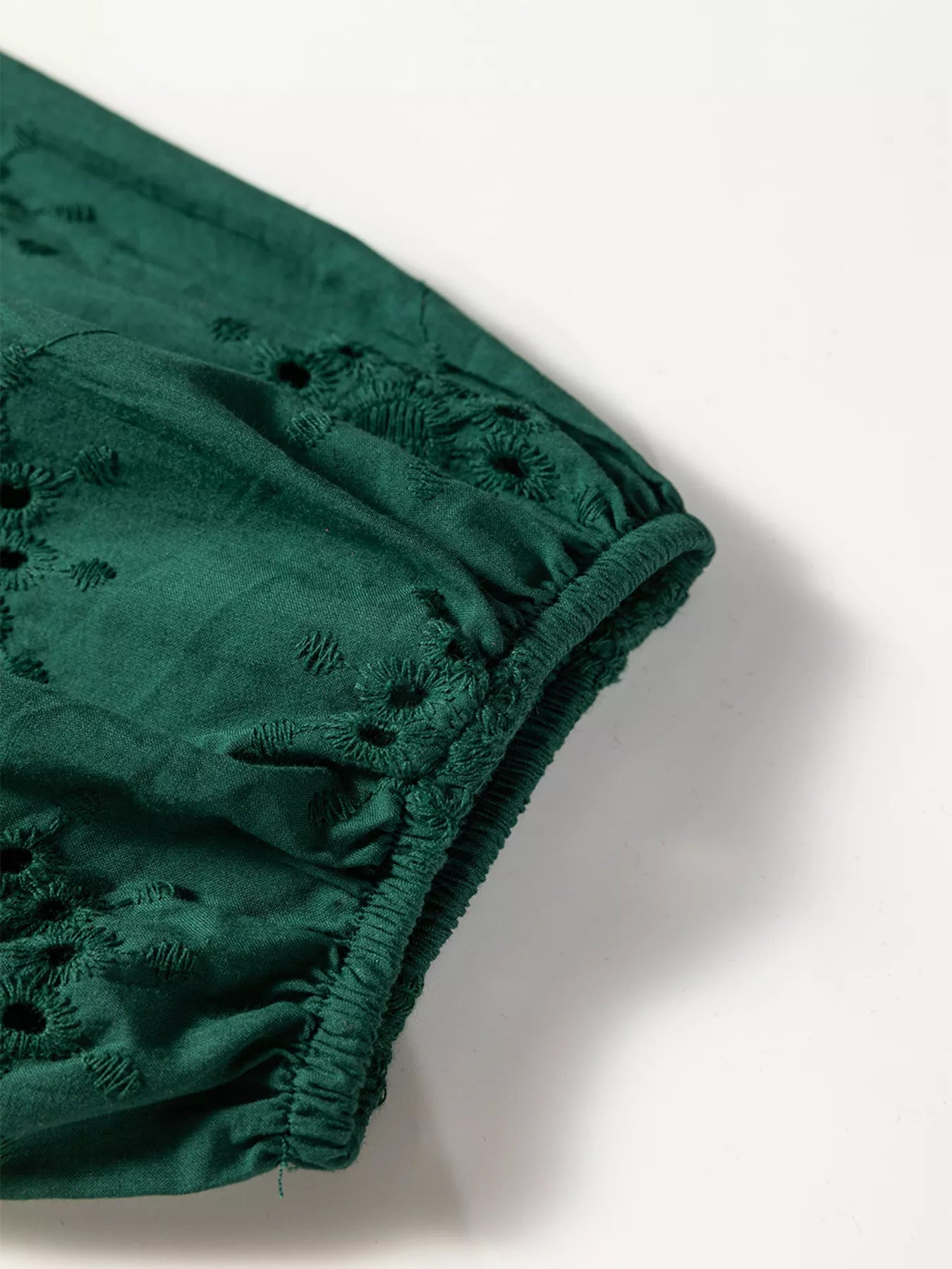 Embroidered Eyelet Pattern 3/4 Puffy Sleeve Swing Mini Dress