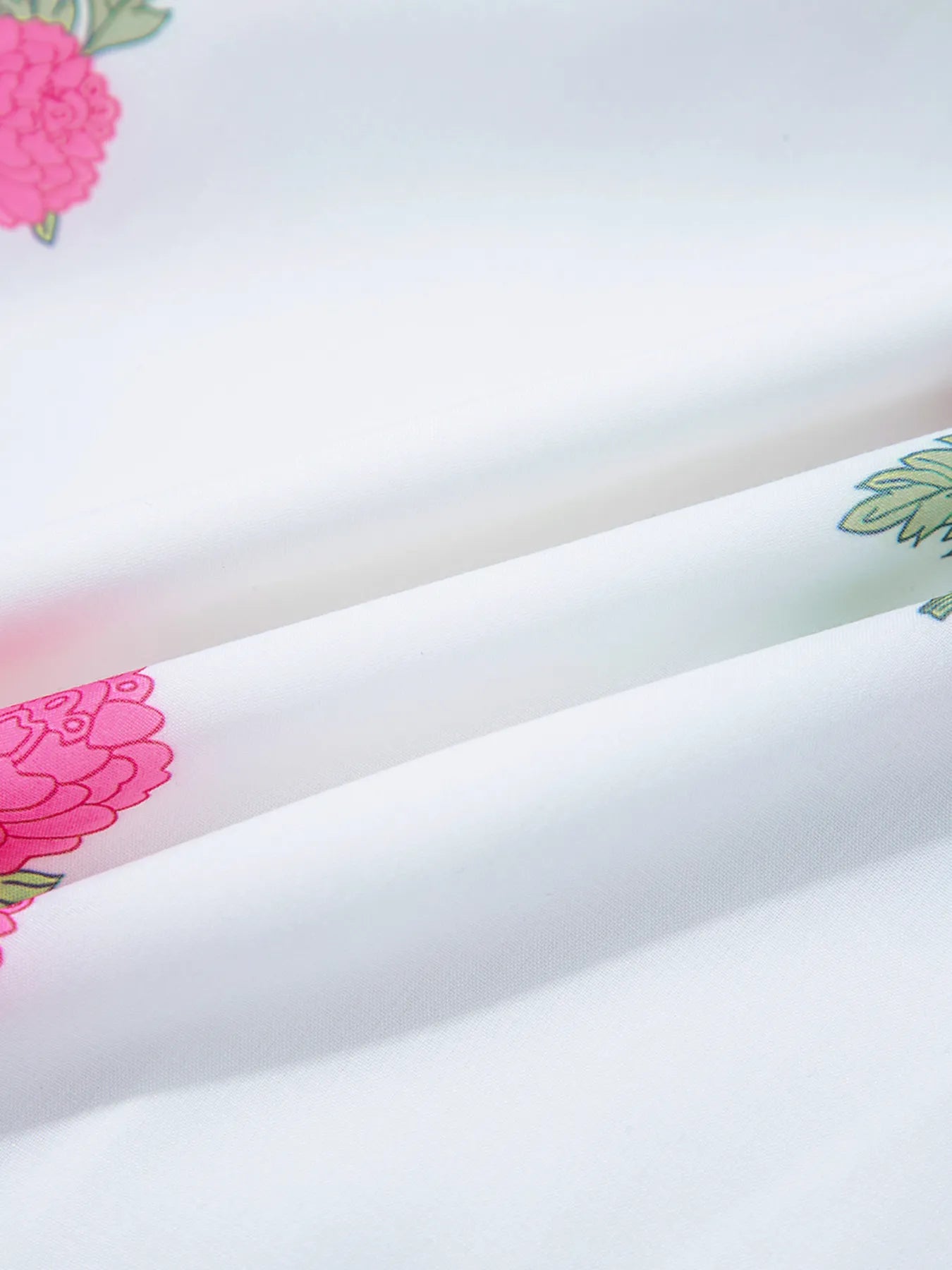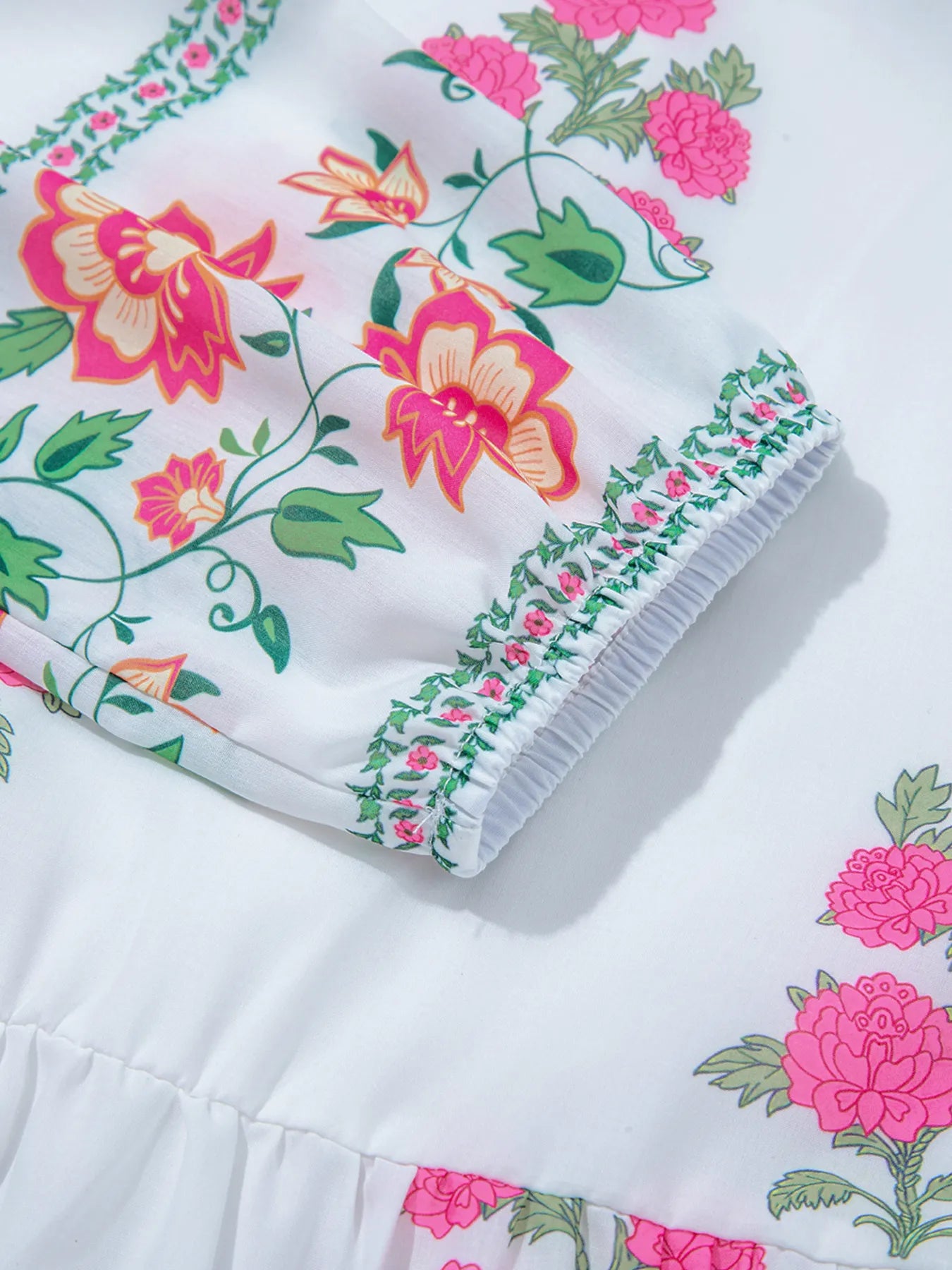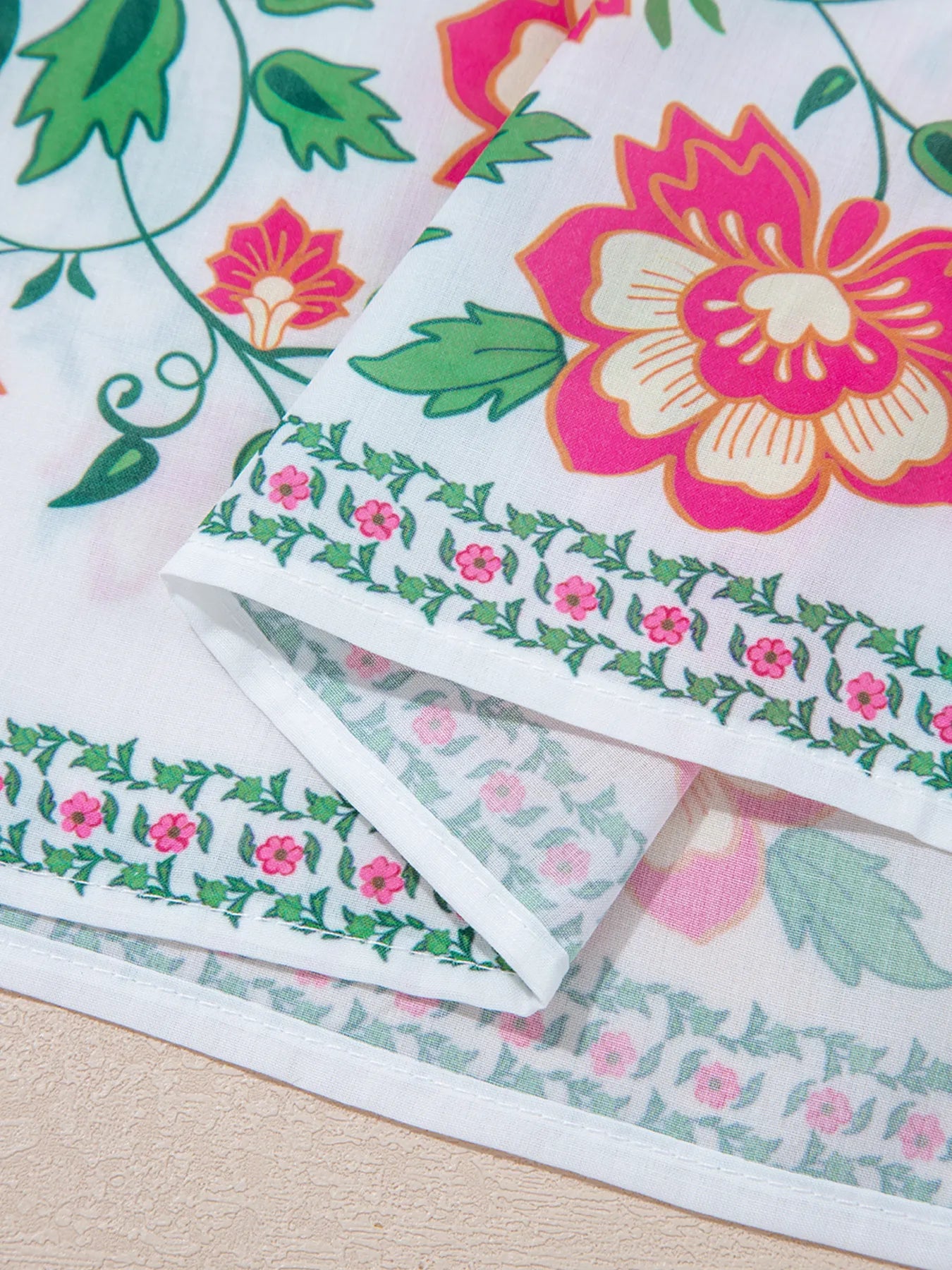 Floral Print Half Button Mandarin Neck 3/4 Sleeve Maxi Dress