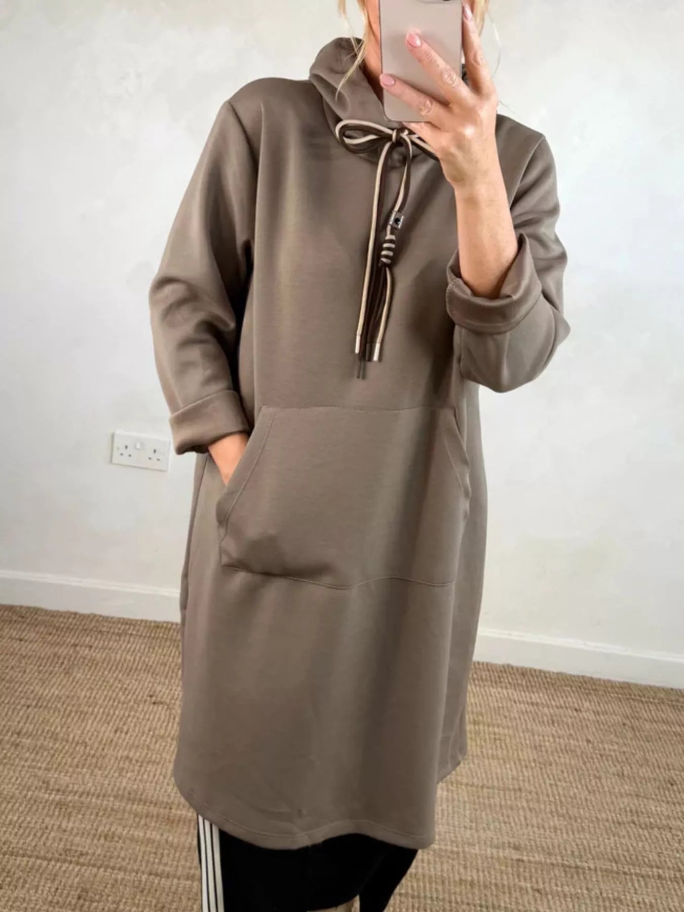 Full Size Casual Drawstring Hooded Sweatshirt Dress Plus Size