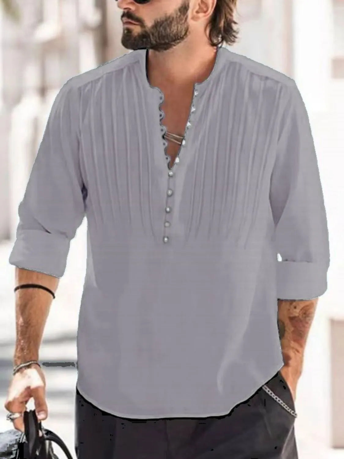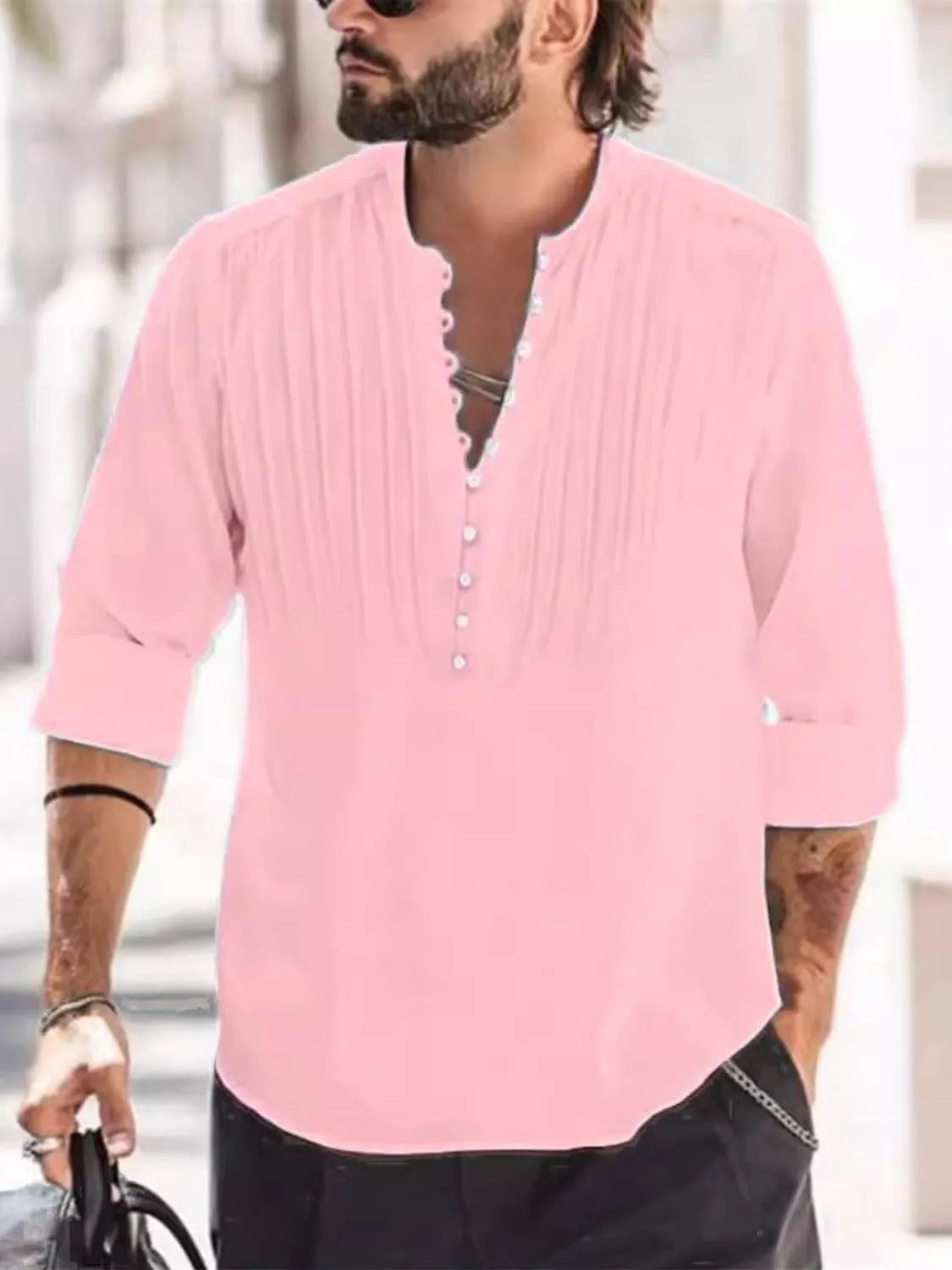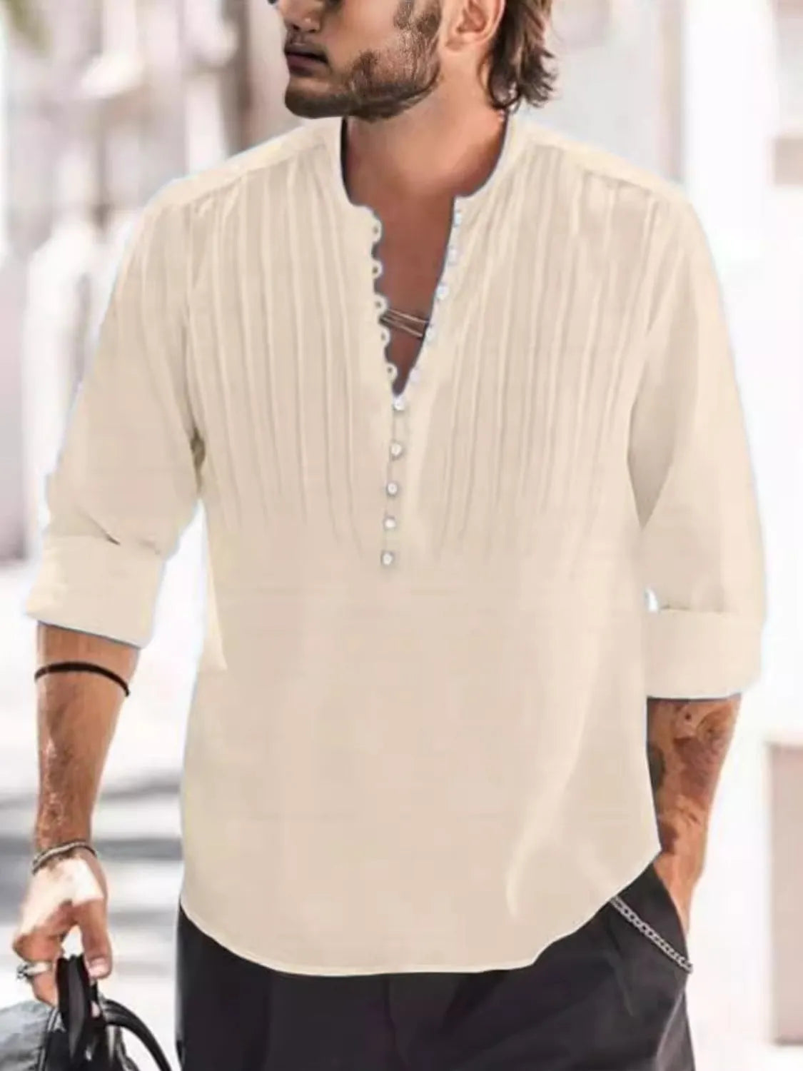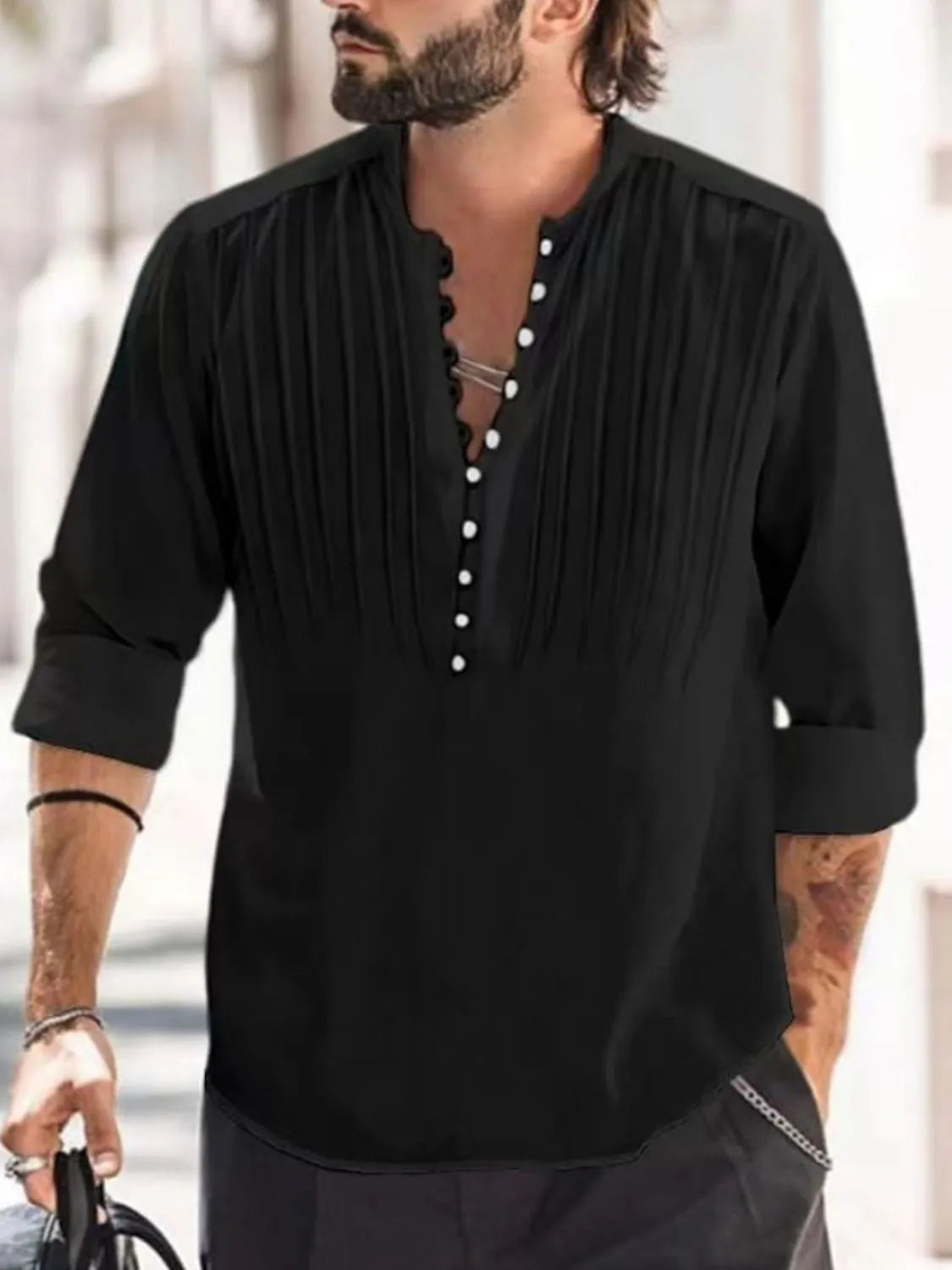 Men's Full Size Button Detail Long Sleeve Polo Plus Size