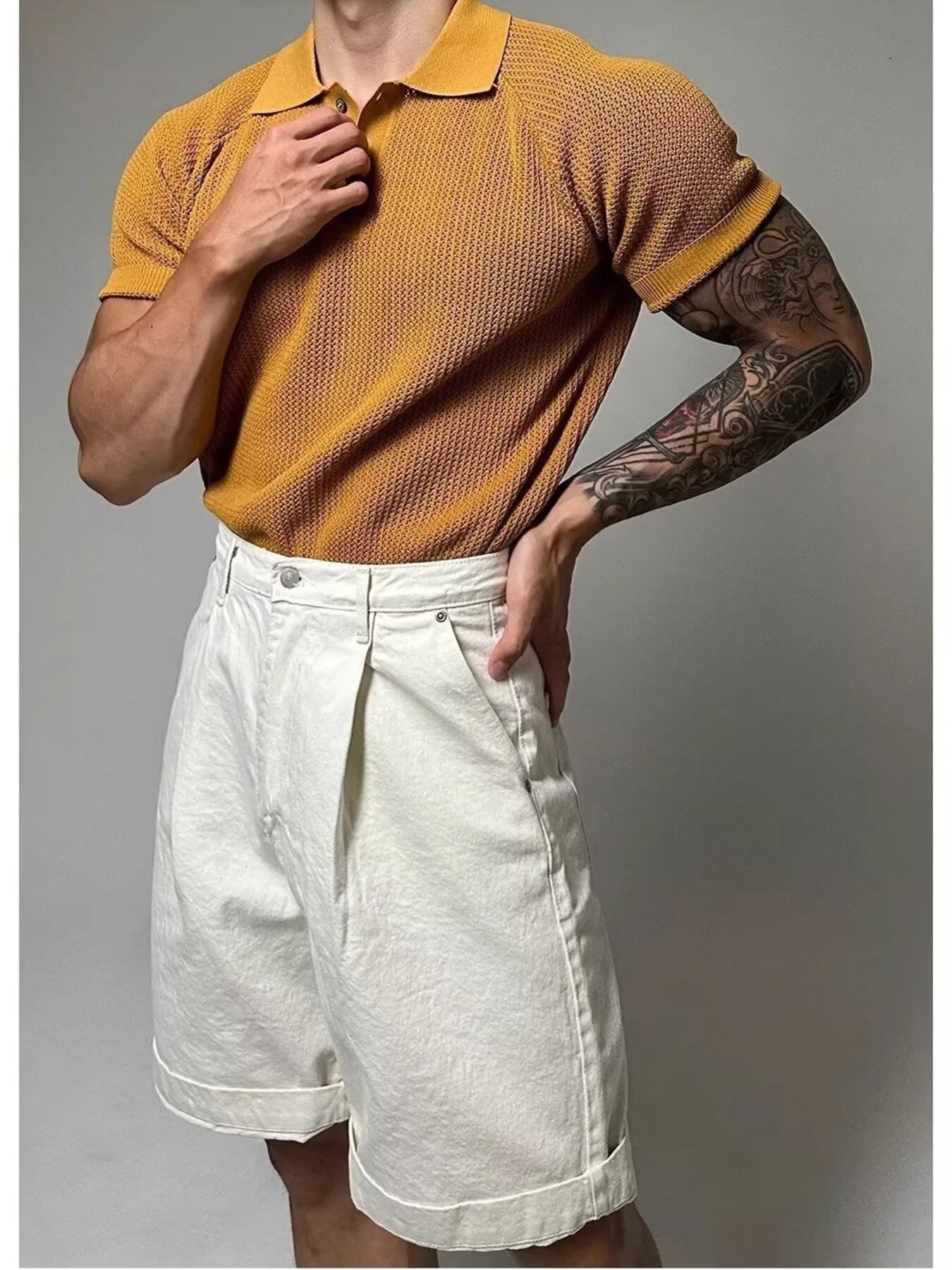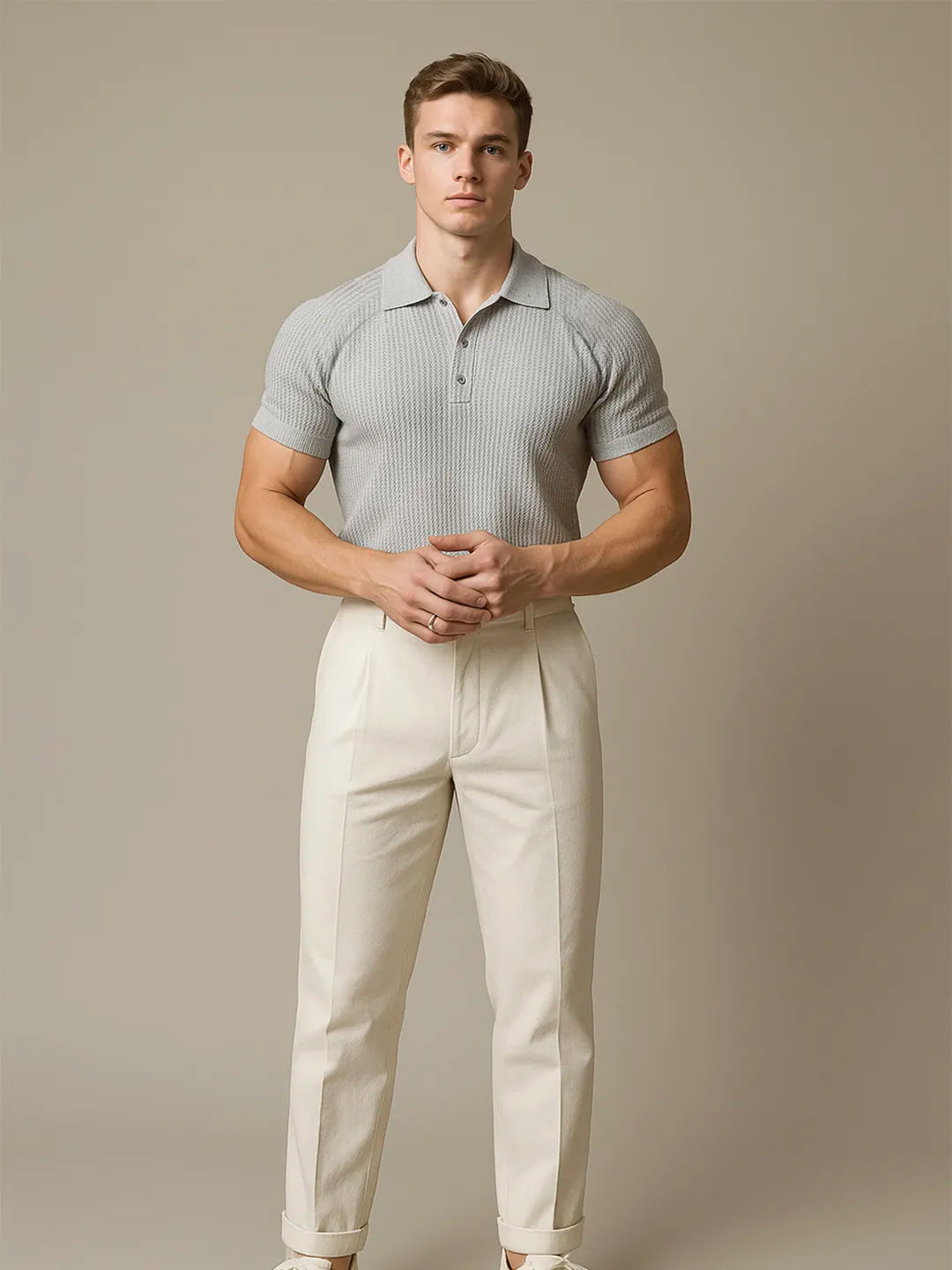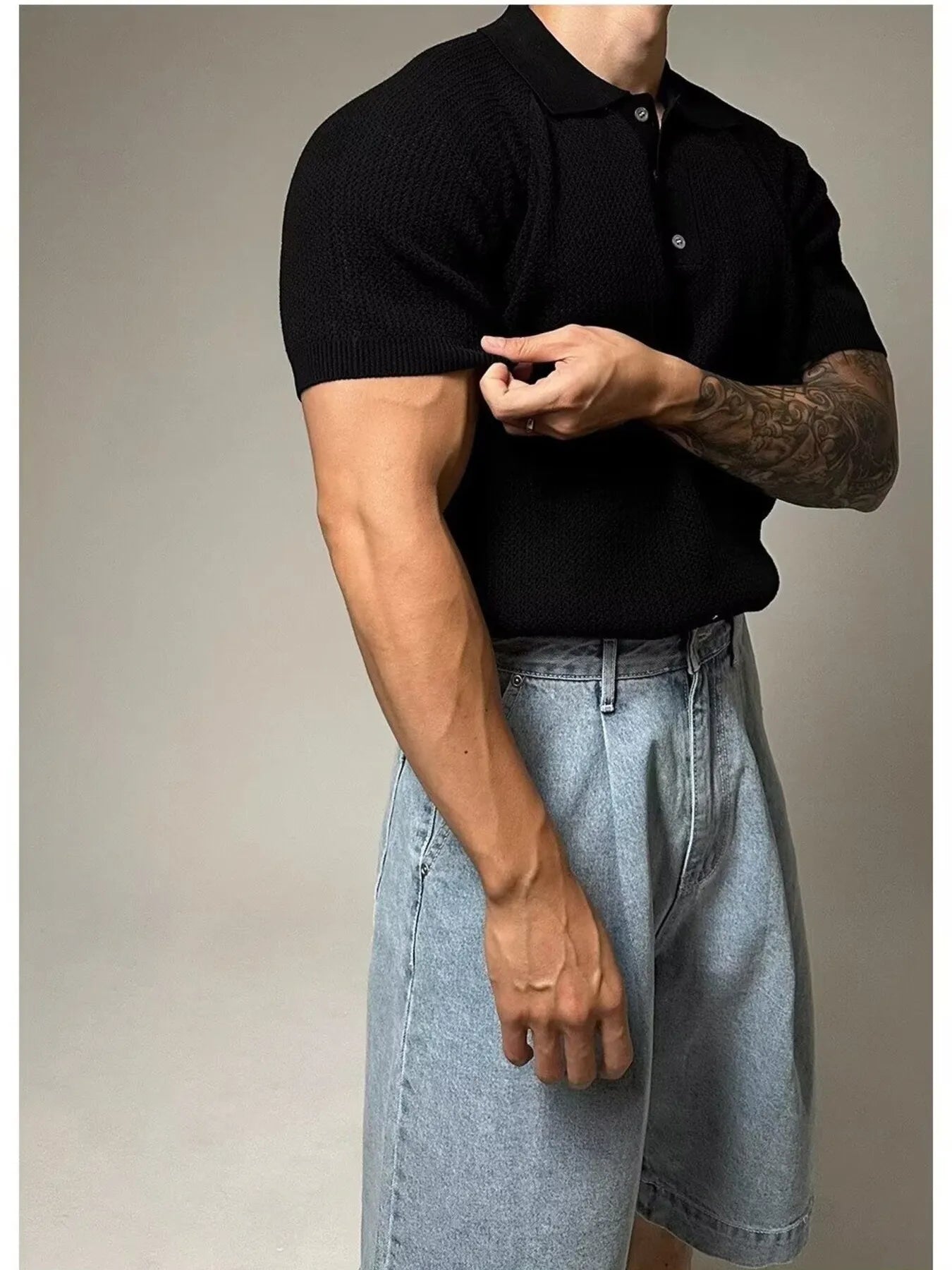 Men's Full Size Textured Knit Short Sleeve Polo Plus Size