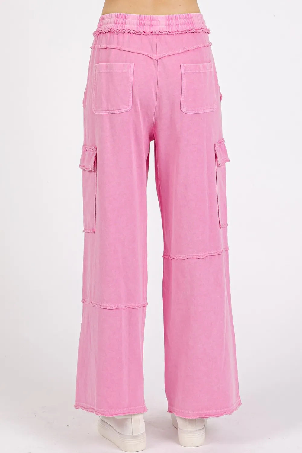 Mittoshop Mineral Wash Elastic Waist Cargo Wide Leg Pants