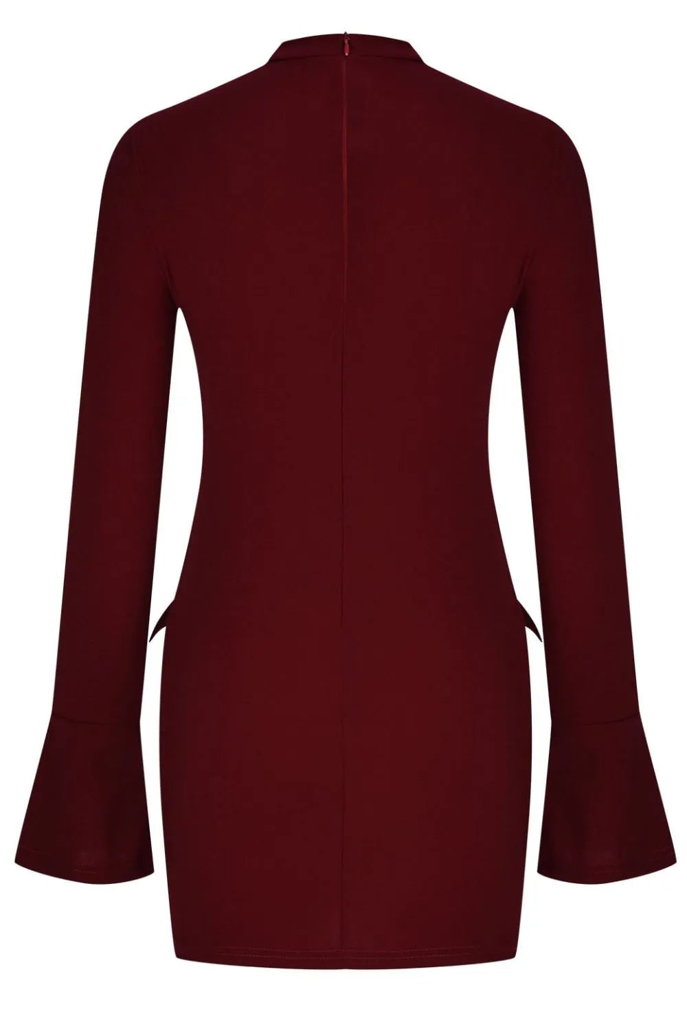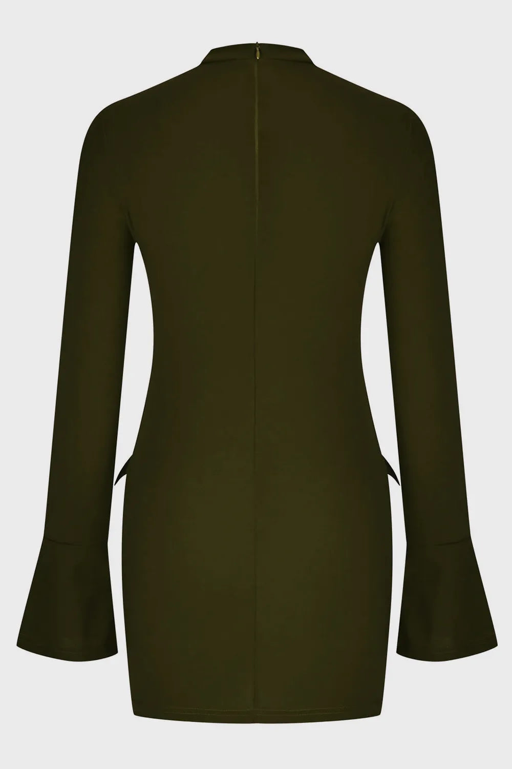 Sequin Sweetheart Neck Tie Back Long Sleeve Slit Dress
