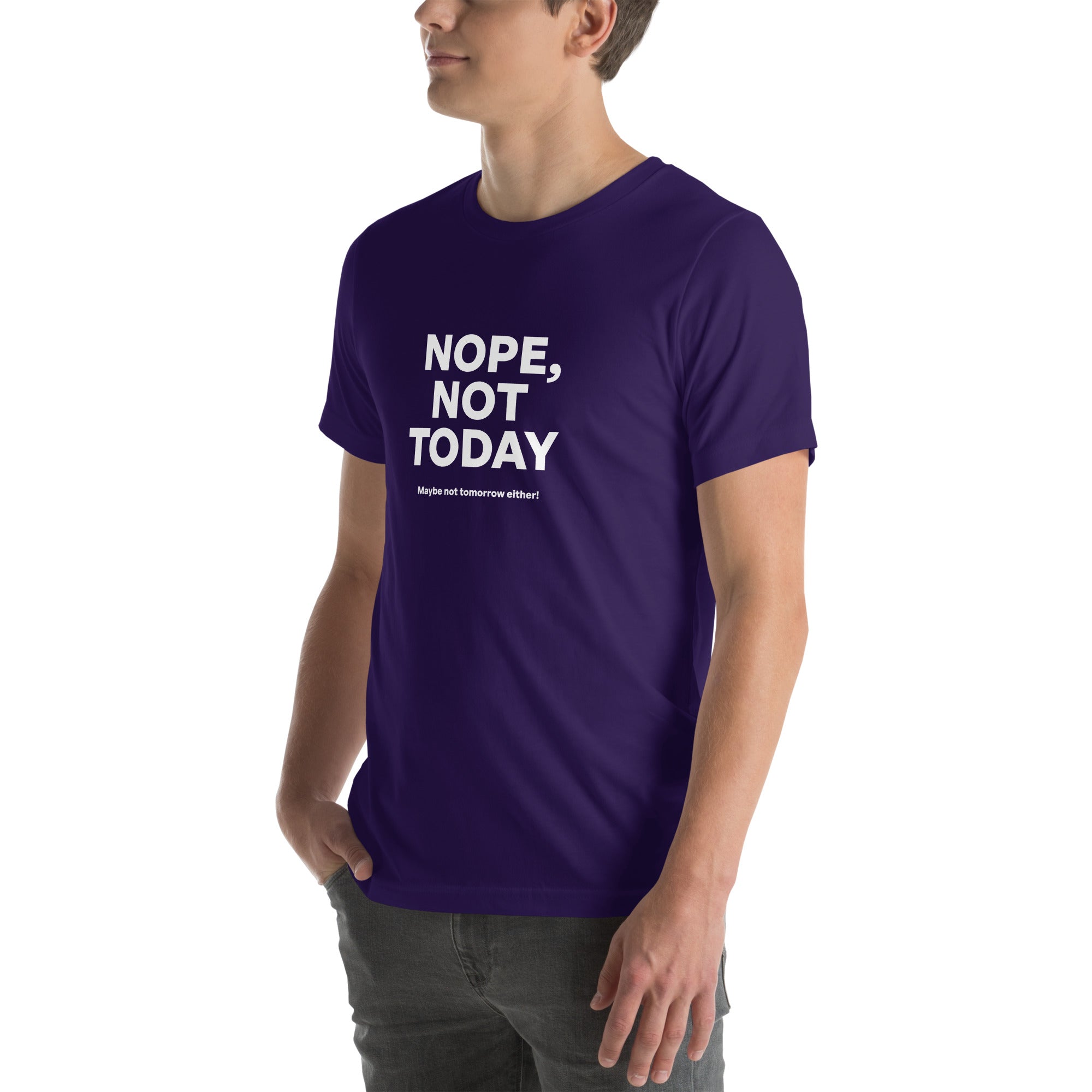 Nope, Not Today Tee, Serving attitude with comfort. This tee is for those days when motivation’s missing and sarcasm is strong. Chill, witty, and effortlessly cool—your new off-duty mood shirt.