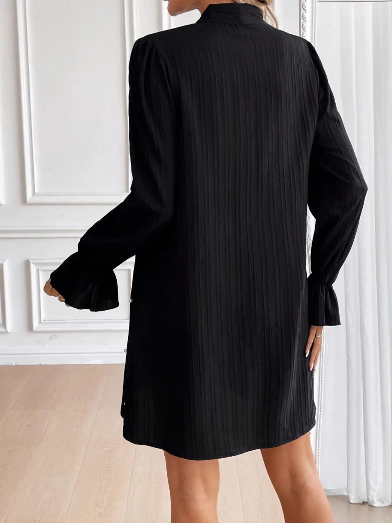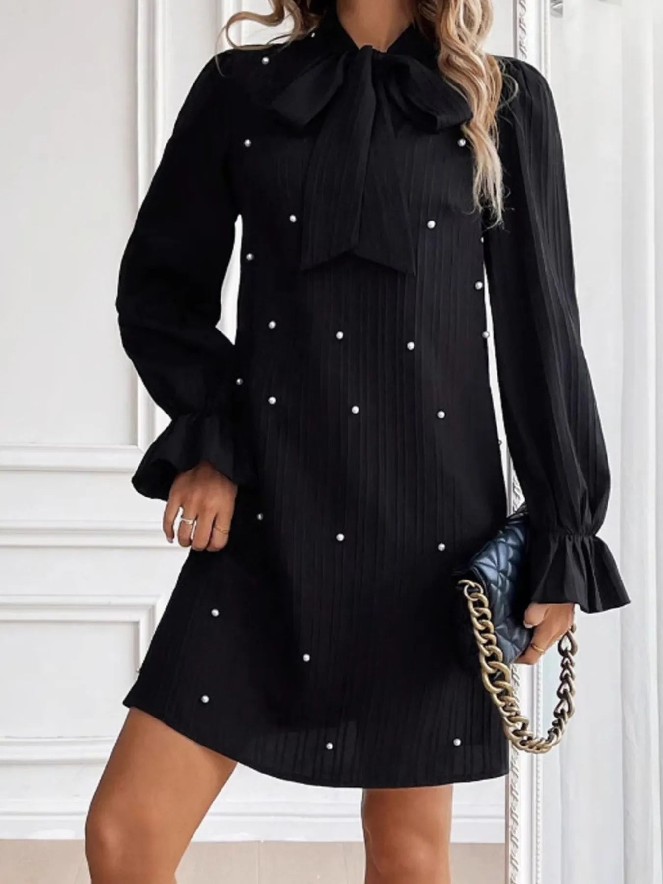 Pearl Embellished Bow Tie Flounce Sleeve Dress