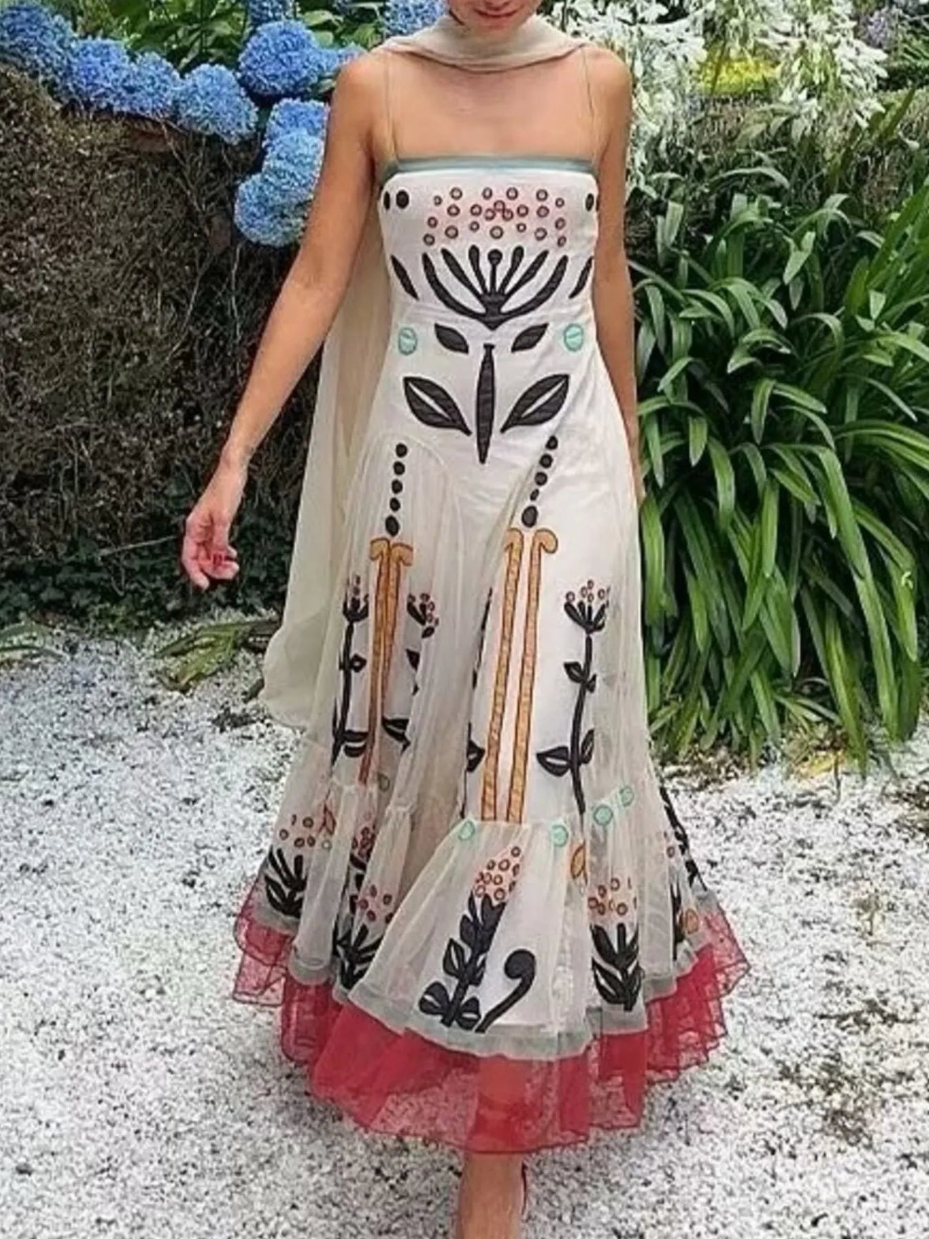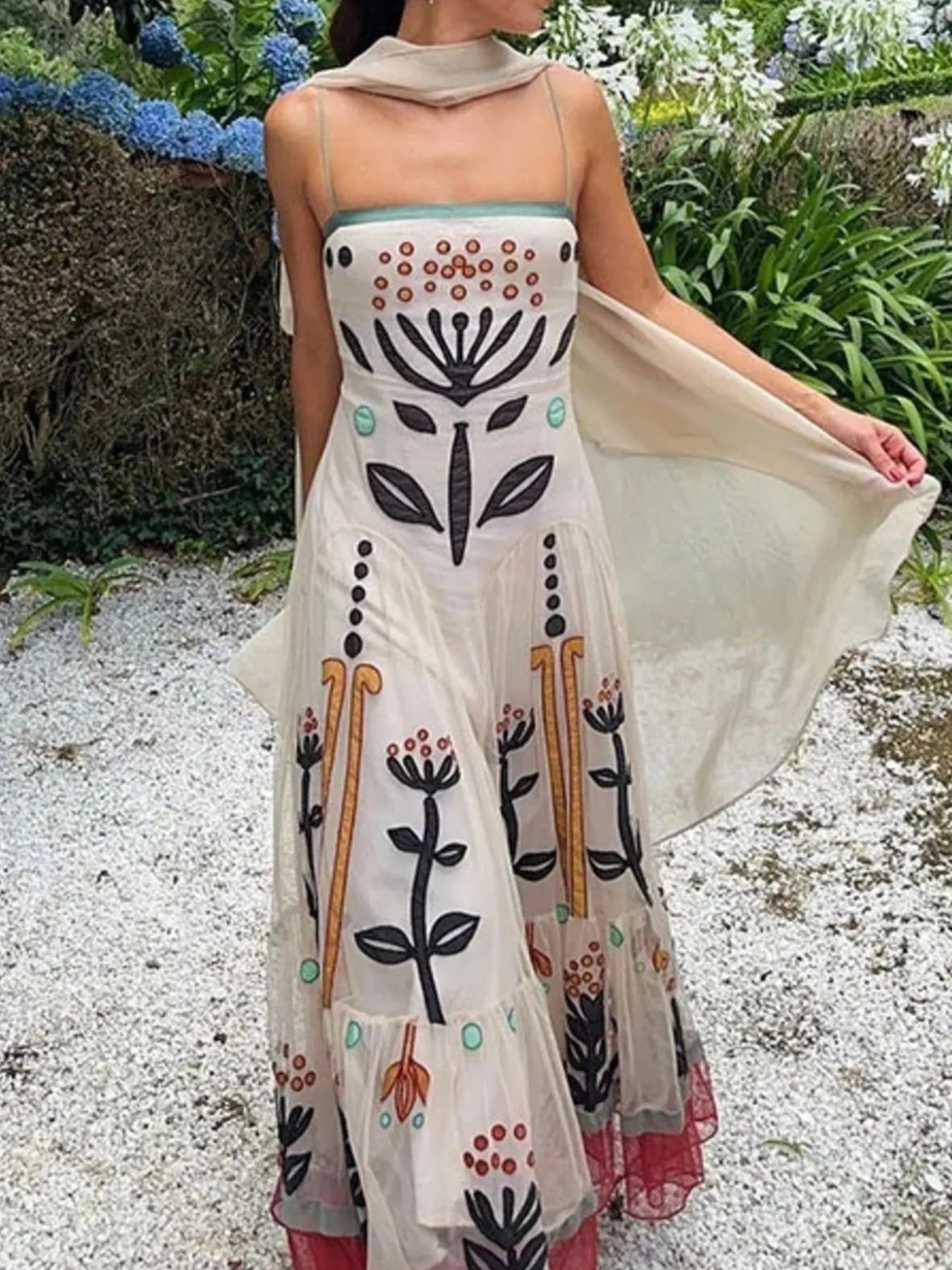 Ruffled Hem Square Neck Maxi Dress